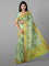 Latest LIGHT OLIVE GREEN DIGITAL PRINT SILK Saree with ZARI border. This saree comes with PRINT WITH BORDER SILK blouse.