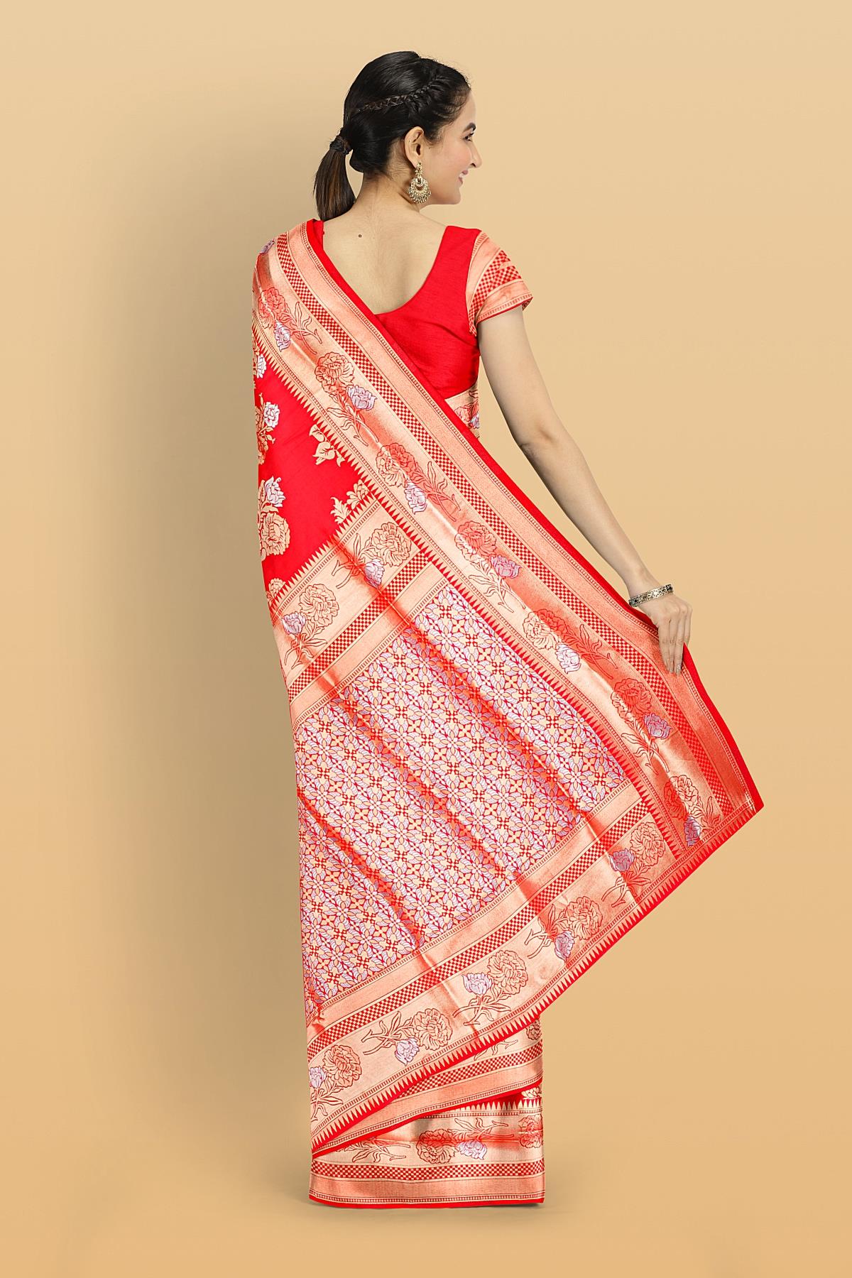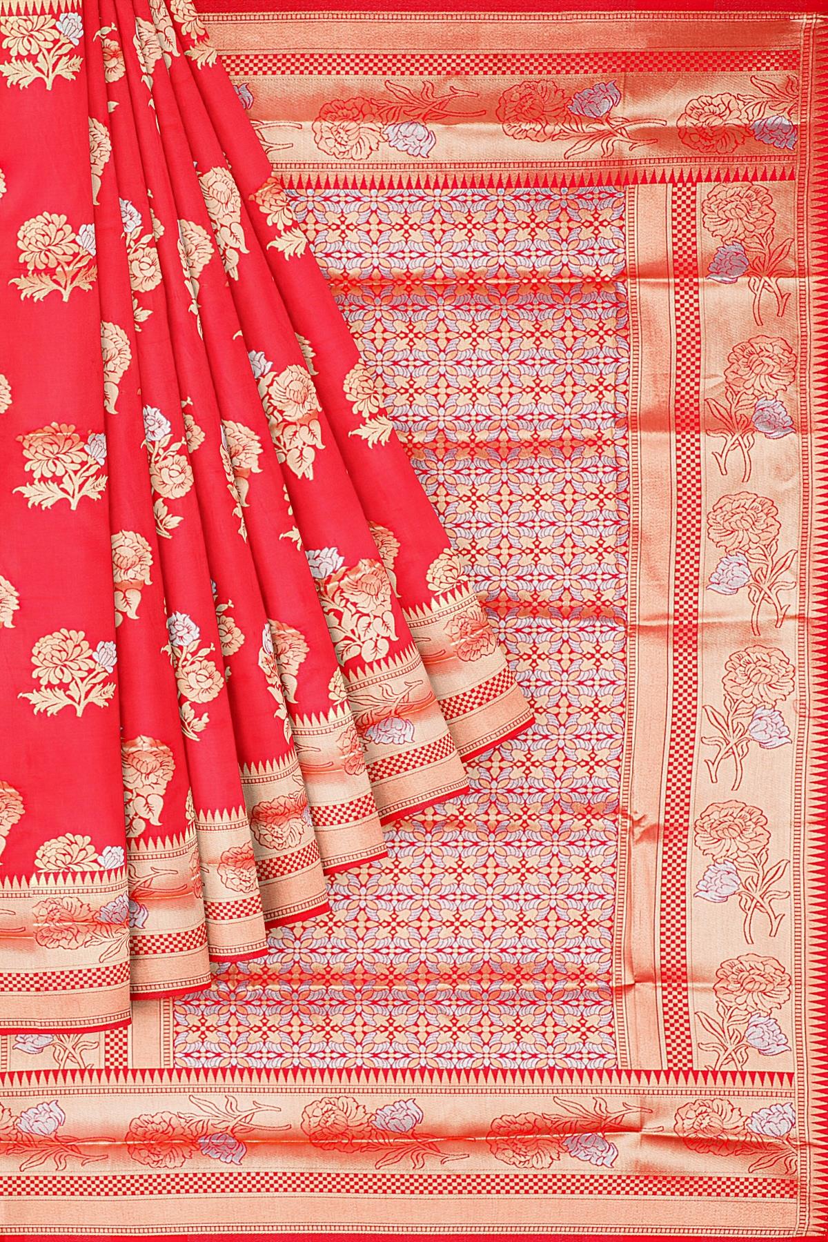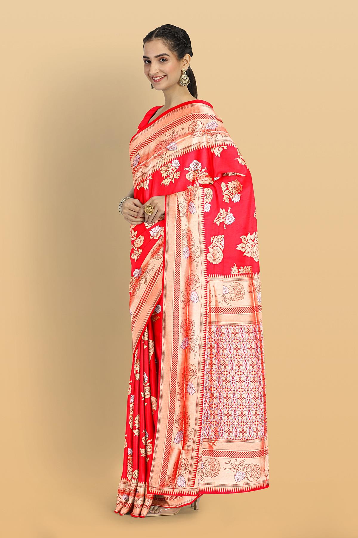 Latest LIGHT PINK FLORALS SILK BLEND Saree with SELF ZARI border. This saree comes with PLAIN WITH BORDER SILK BLEND blouse.