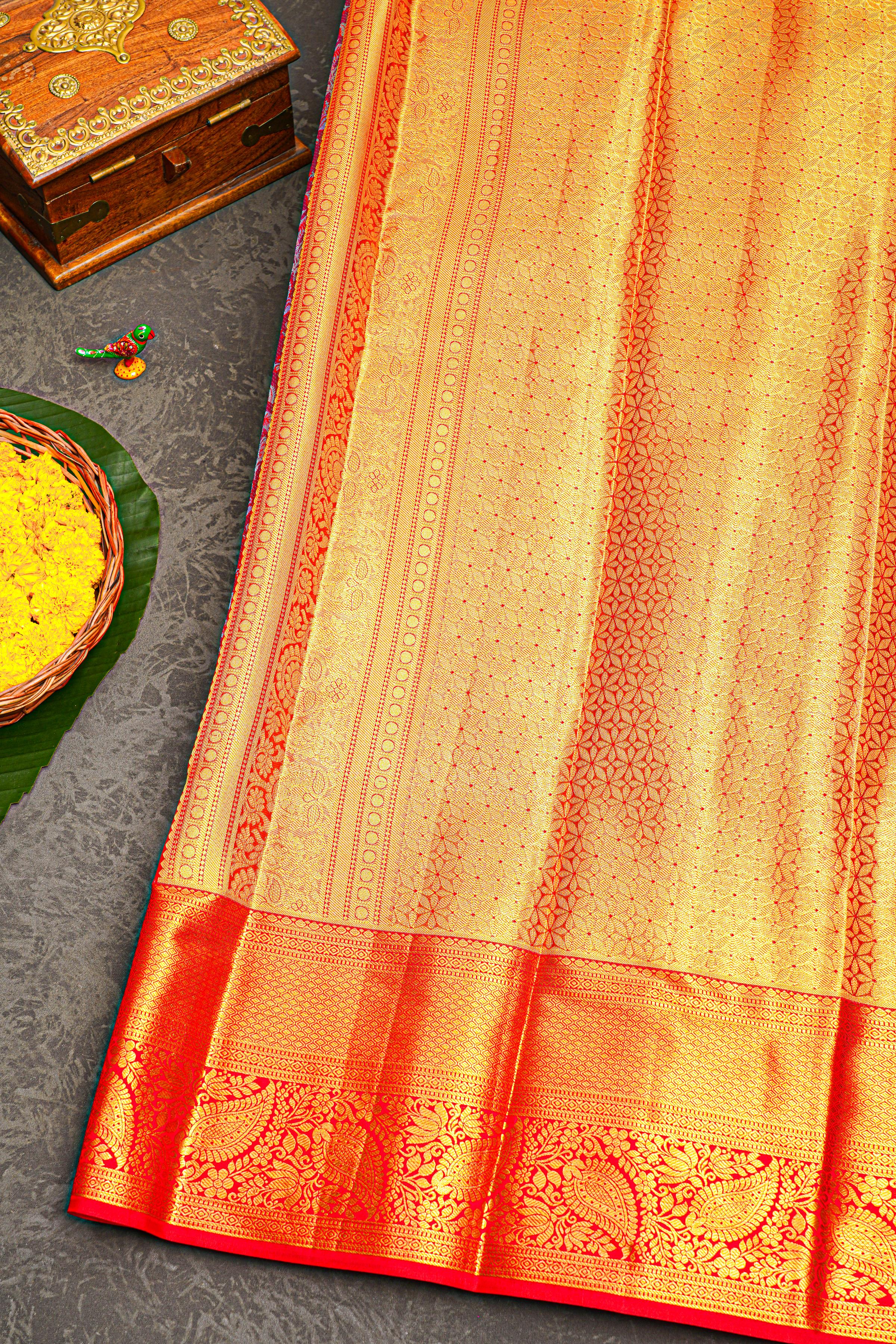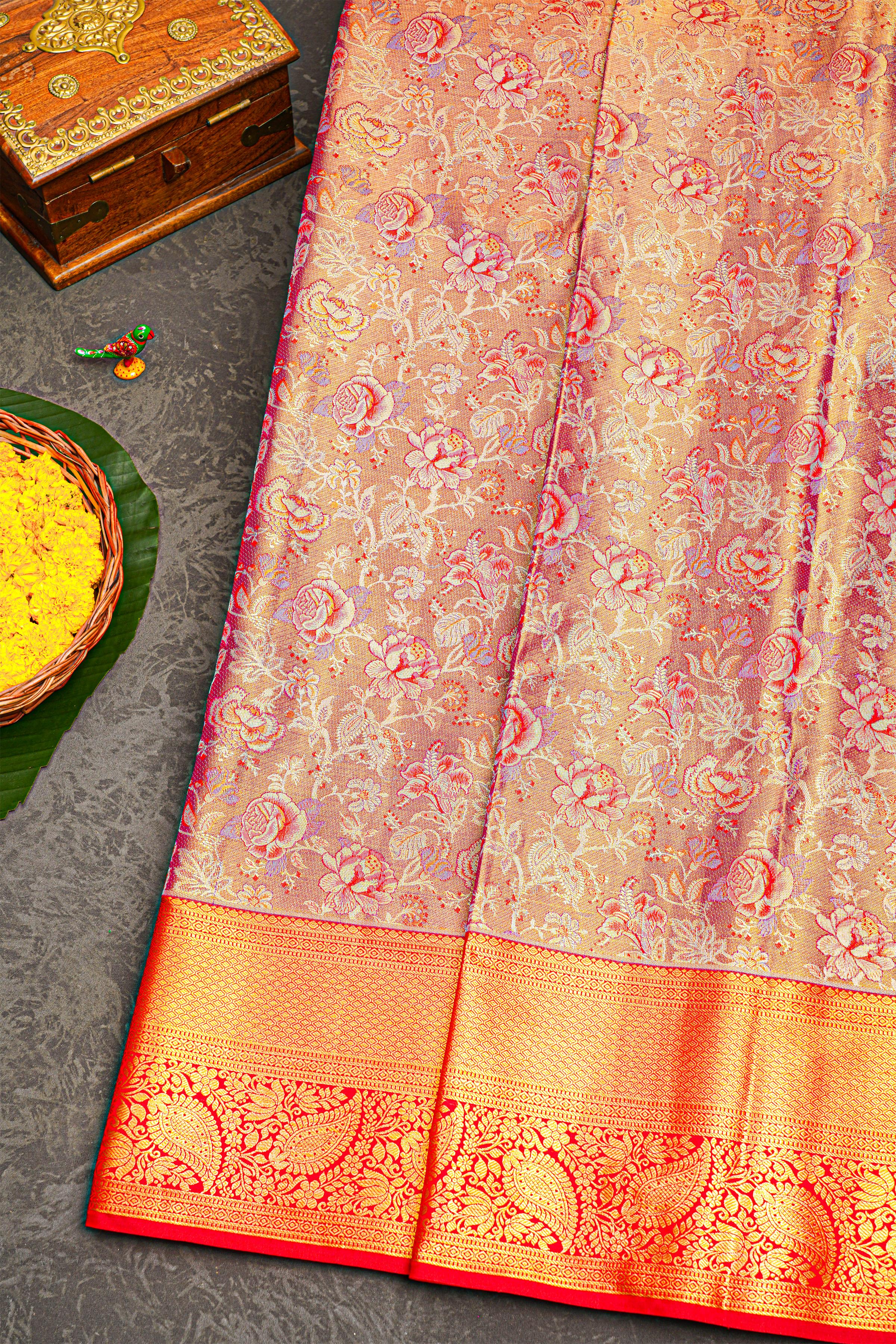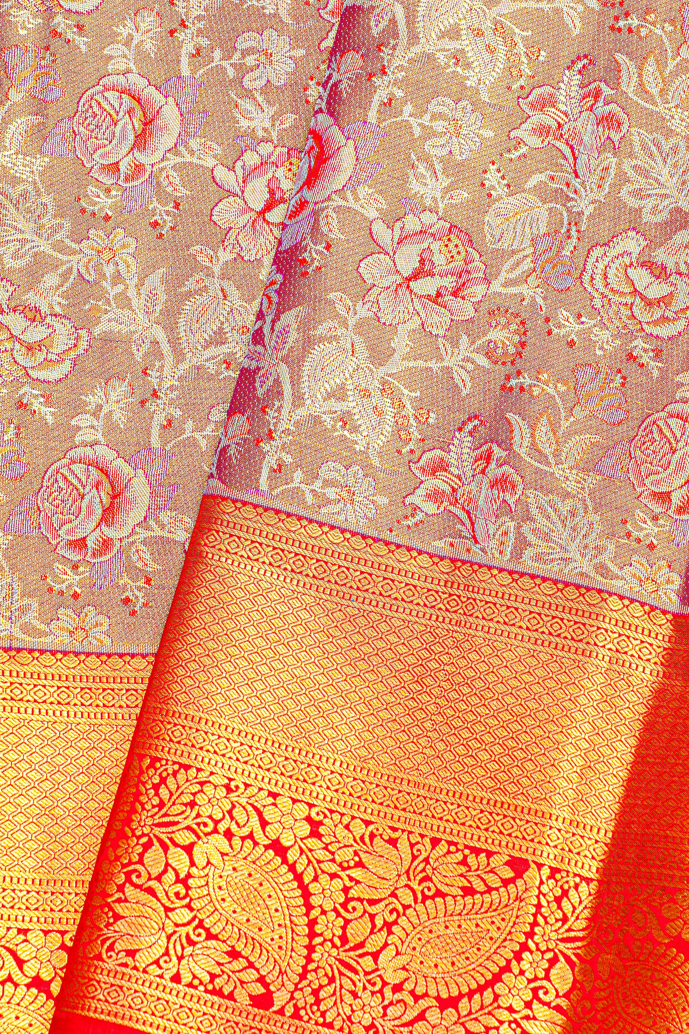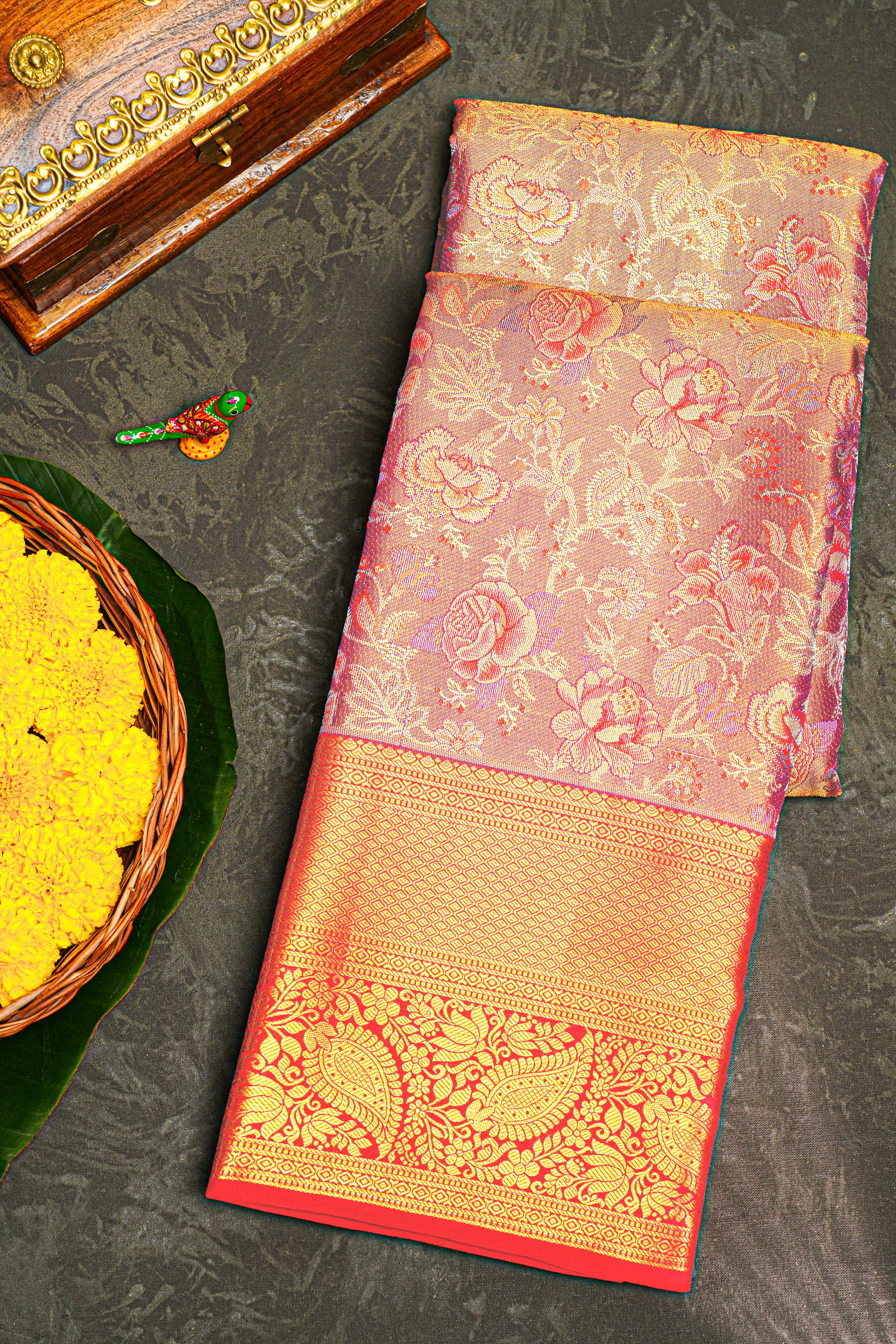 LIGHT PURPLE and RED FLORAL JAAL SILK Saree with KANCHIPURAM
