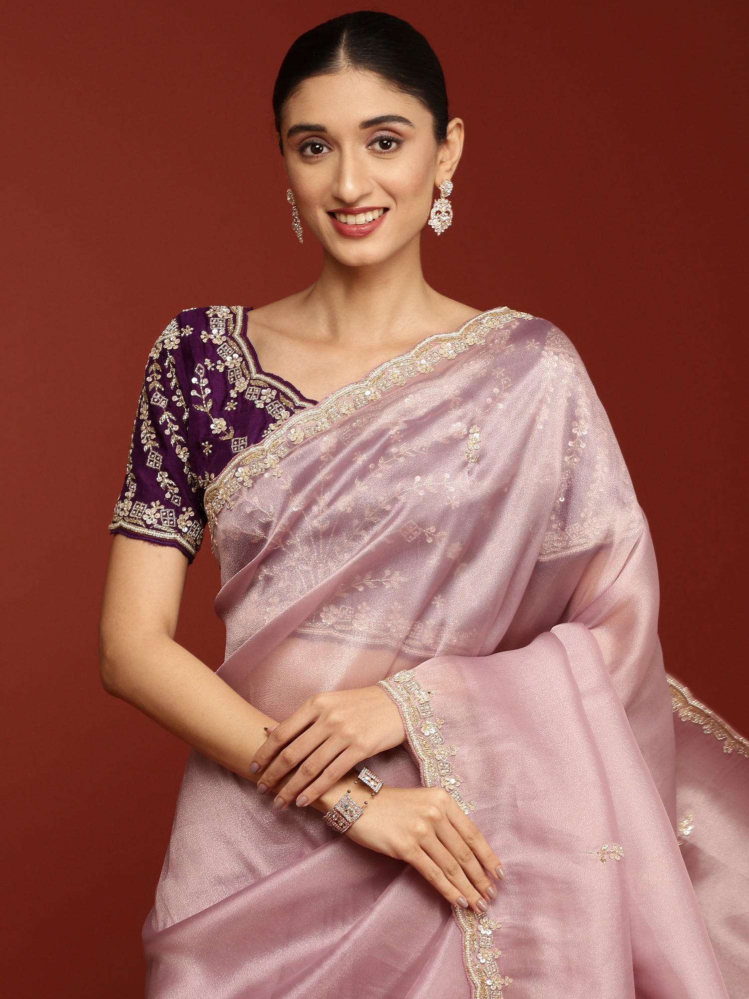 Lilac Tissue Saree With Stone Work Readymade Blouse