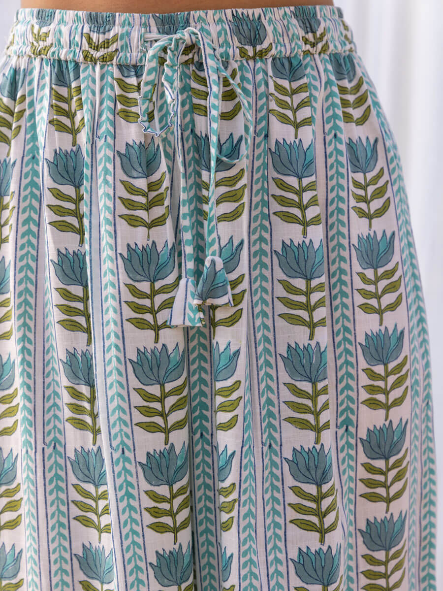 Lotus Meadow Slub Hand Block Print Palazzo Pants
