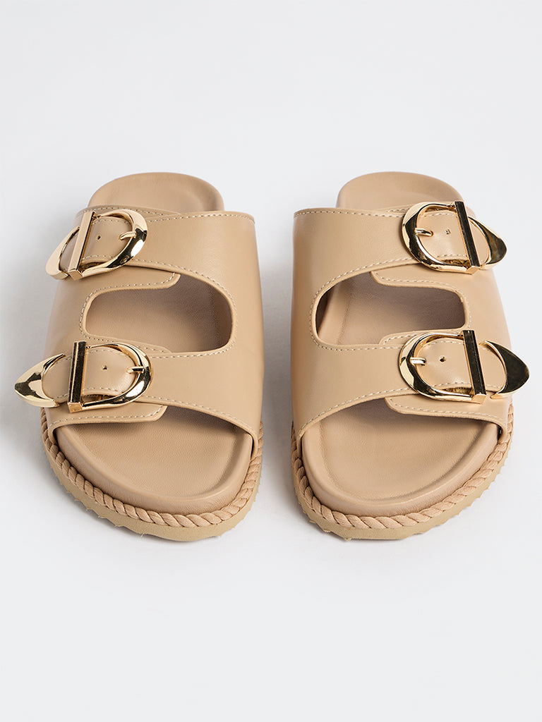 LUNA BLU Beige Buckle-Detailed Slip-On Comfort Sandals