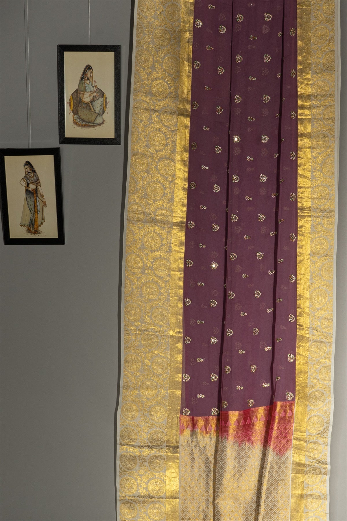 Mandir Mauve & Off White Kanchi Buttis Saree