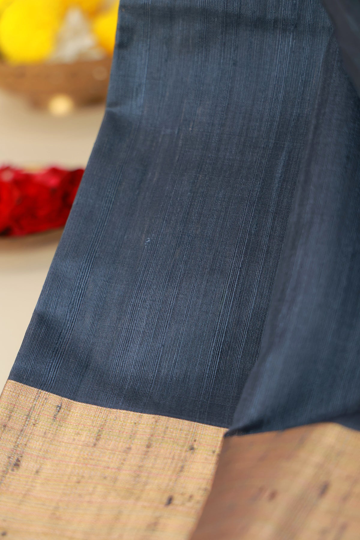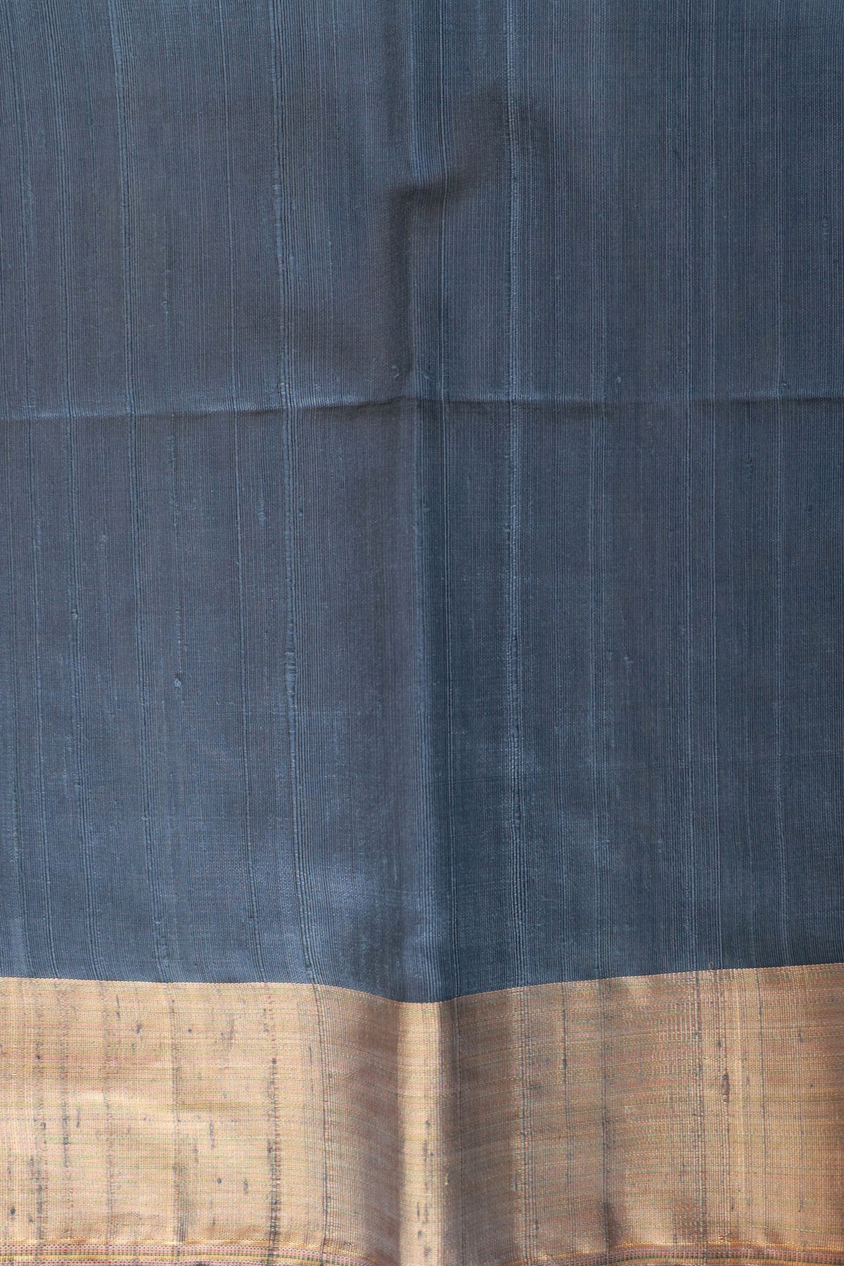 Embodying tradition and cultural heritage, our exquisite Matka Silk Grey Saree exudes festive elegance. Intricately woven small zari lines elevate its grace, complemented by a contrast border adorned with kaddi motifs that evoke a divine charm. Complete with a brocade pallu and a self with border border blouse, this ensemble captures the essence of festivity with timeless sophistication.