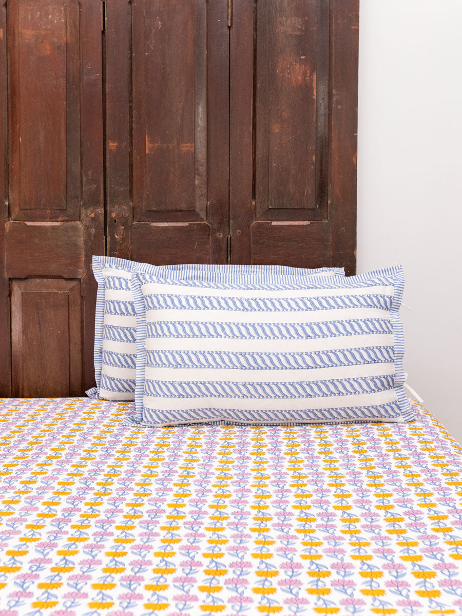 Padma or the Lotus is a central figure in many art forms including Pichhwai. It's a flower with meaning, beauty, and great cultural significance. The origin of the Lotus in Hindu mythology goes as far back as 'Samudra Manthan'. Its first association is with Lakshmi who also emerges from 'Samudra', hence, is referred to as Padmaja or Padmavati. This hand block printed home textiles collection is inspired by the beautiful lotus and other nature inspired elements.
