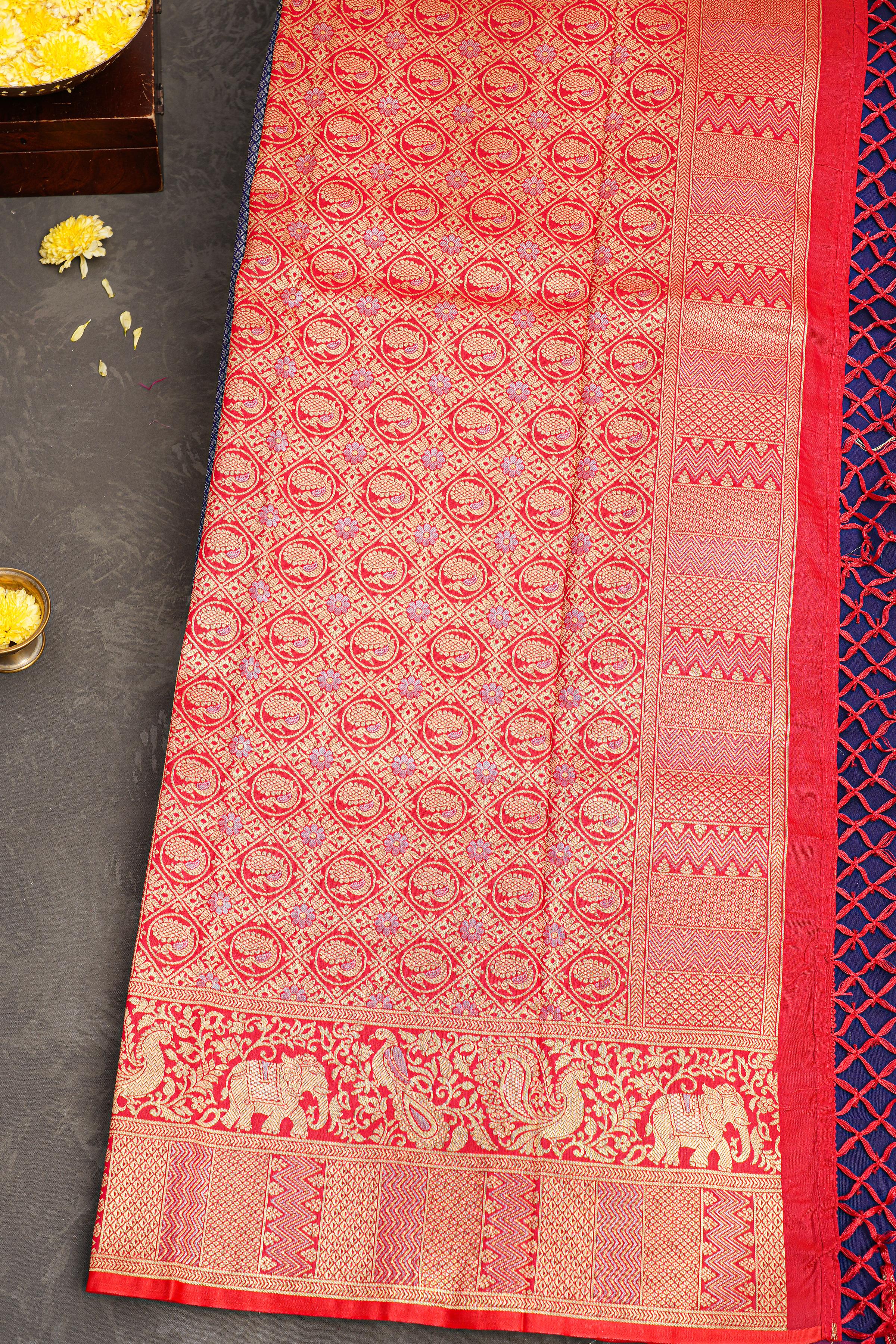 NAVY BLUE and DARK PINK BROCADE SILK Saree with BANARASI FANCY