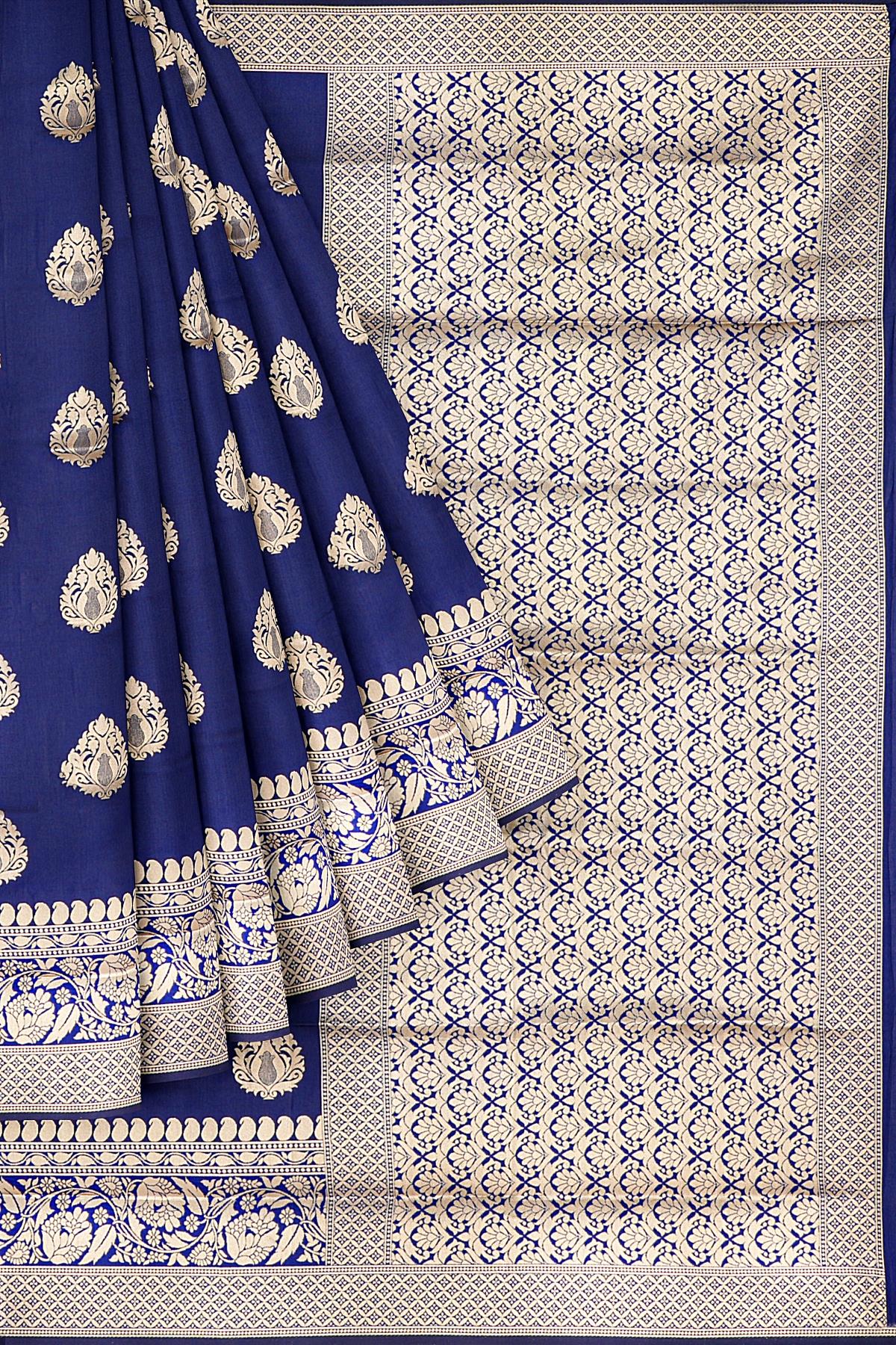 NAVY BLUE and GOLD BUTTIS SILK BLEND Saree with SEMI PATTU