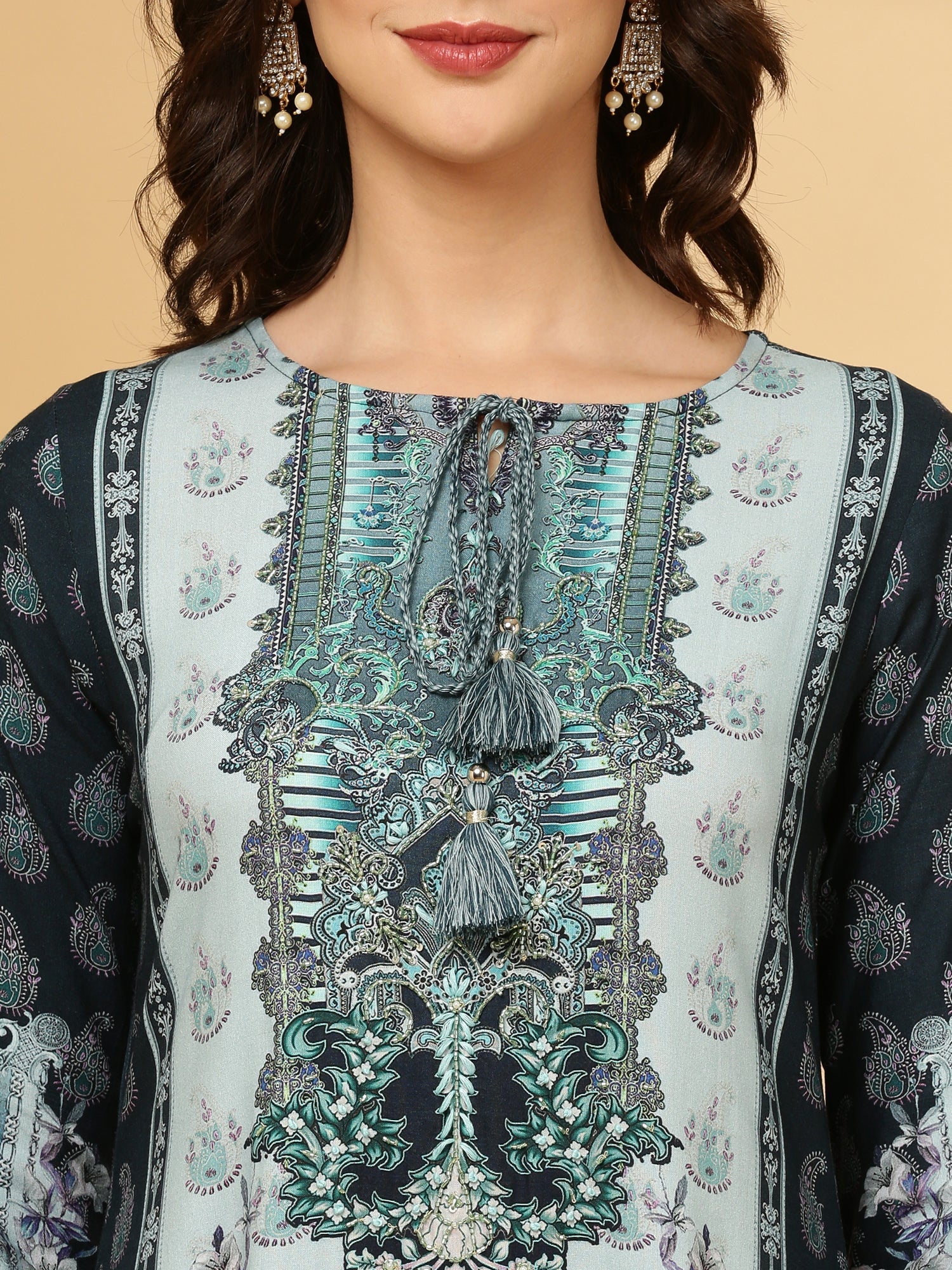 This Navy Blue Rayon Printed Three Piece Set offers a refined blend of comfort and style. Crafted from soft rayon fabric, it features intricate prints that add subtle elegance to your wardrobe. The coordinated pieces create a cohesive look, perfect for sophisticated casual wear or chic gatherings. Experience effortless style with this versatile set designed to enhance your everyday charm.
