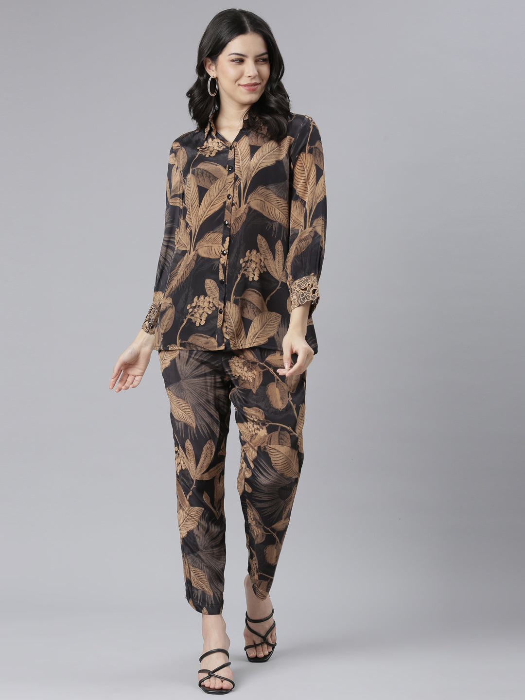 Neeru's Black Regular Straight Abstract Top And Trousers
