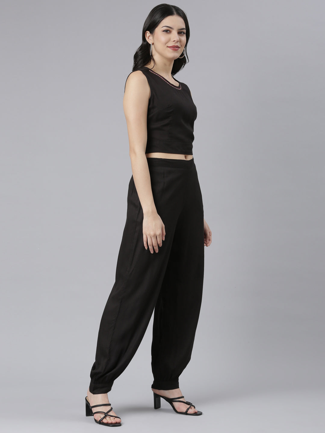 Elegant Neeru's Black Tribal Top And Salwar Set With Jacket