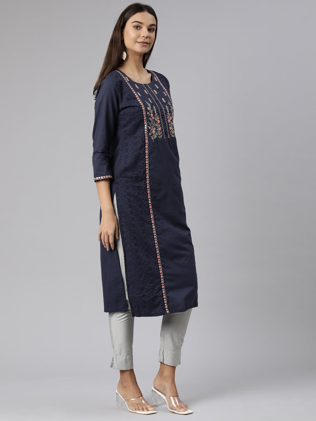 Neeru's Blue Floral Straight Kurtas - Premium, Elegant, And Exclusive.