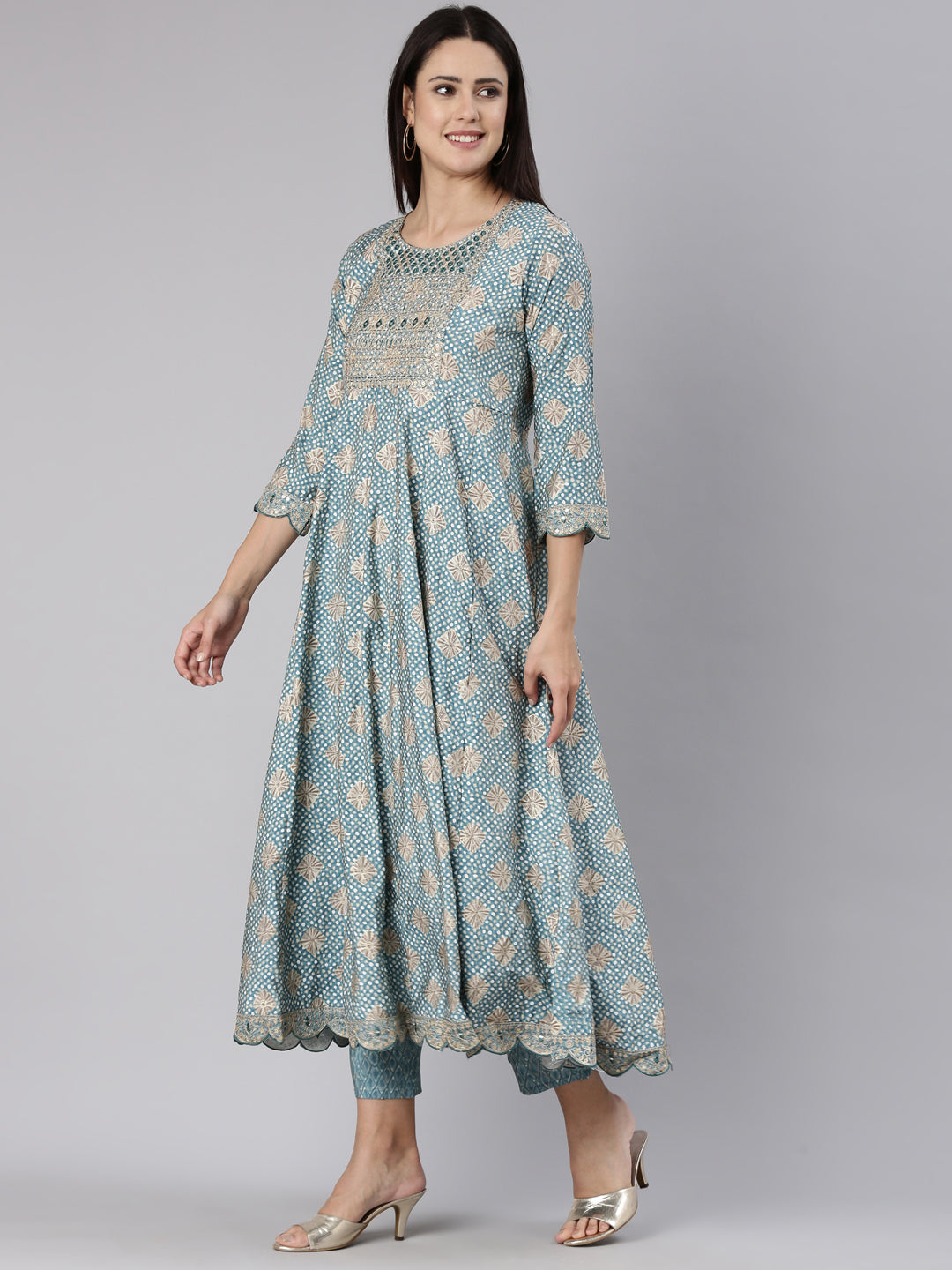 Neeru's Blue Regular Straight Yoke Design Readymade suits