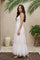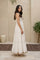 A whisper of elegance in every tier, this off white maxi dress is a summer essential. The smocked bodice hugs gently, while the tiered skirt flows gracefully with every step. Gold trim at the hemline adds a festive touch, making it perfect for casual outings or semi-formal gatherings.