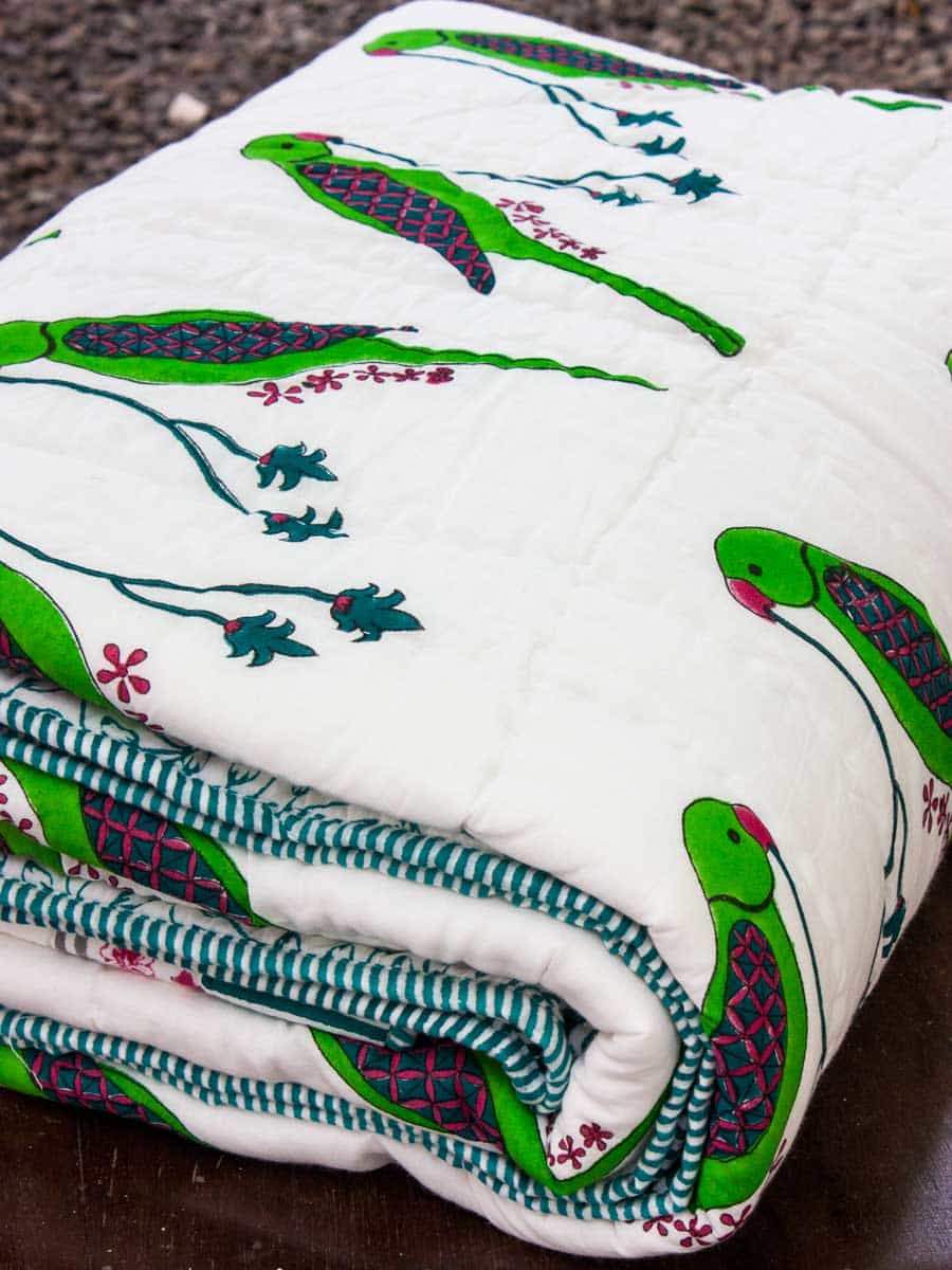 • Comes in a fabric care bag. When not in use, fold neatly and store the quilt in the care bag. We suggest airing the quilt first time before use.