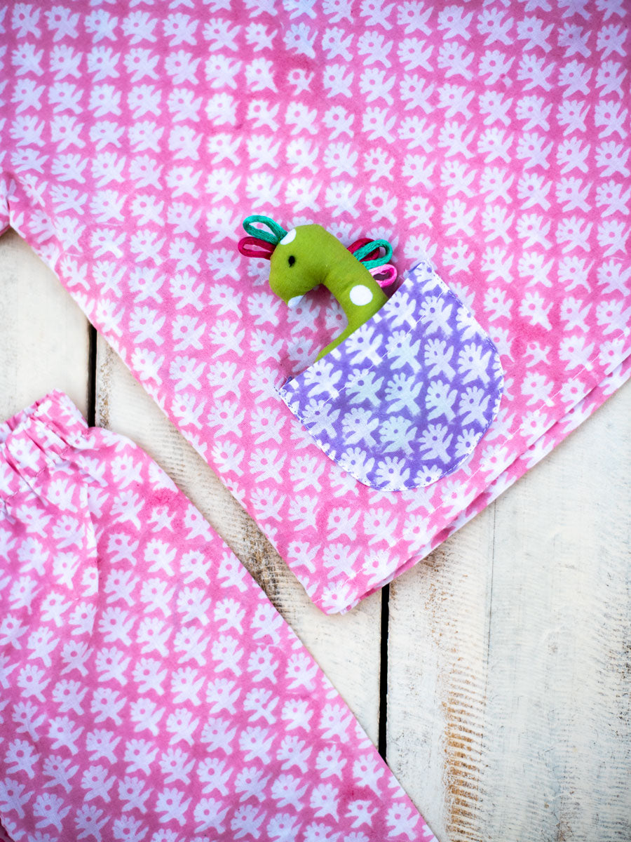 Pink Blossom Organic Cotton Block Printed Angrakha Set