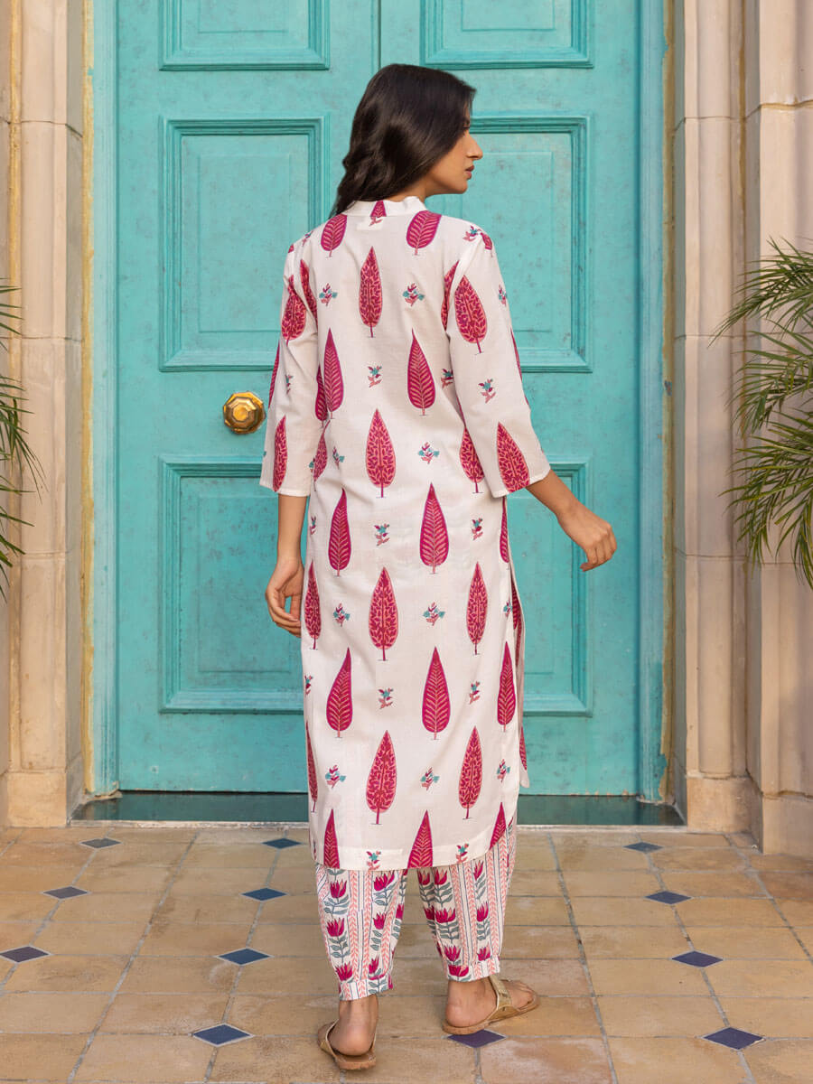 Pink Cypress Hand Block Print Cotton Kurta