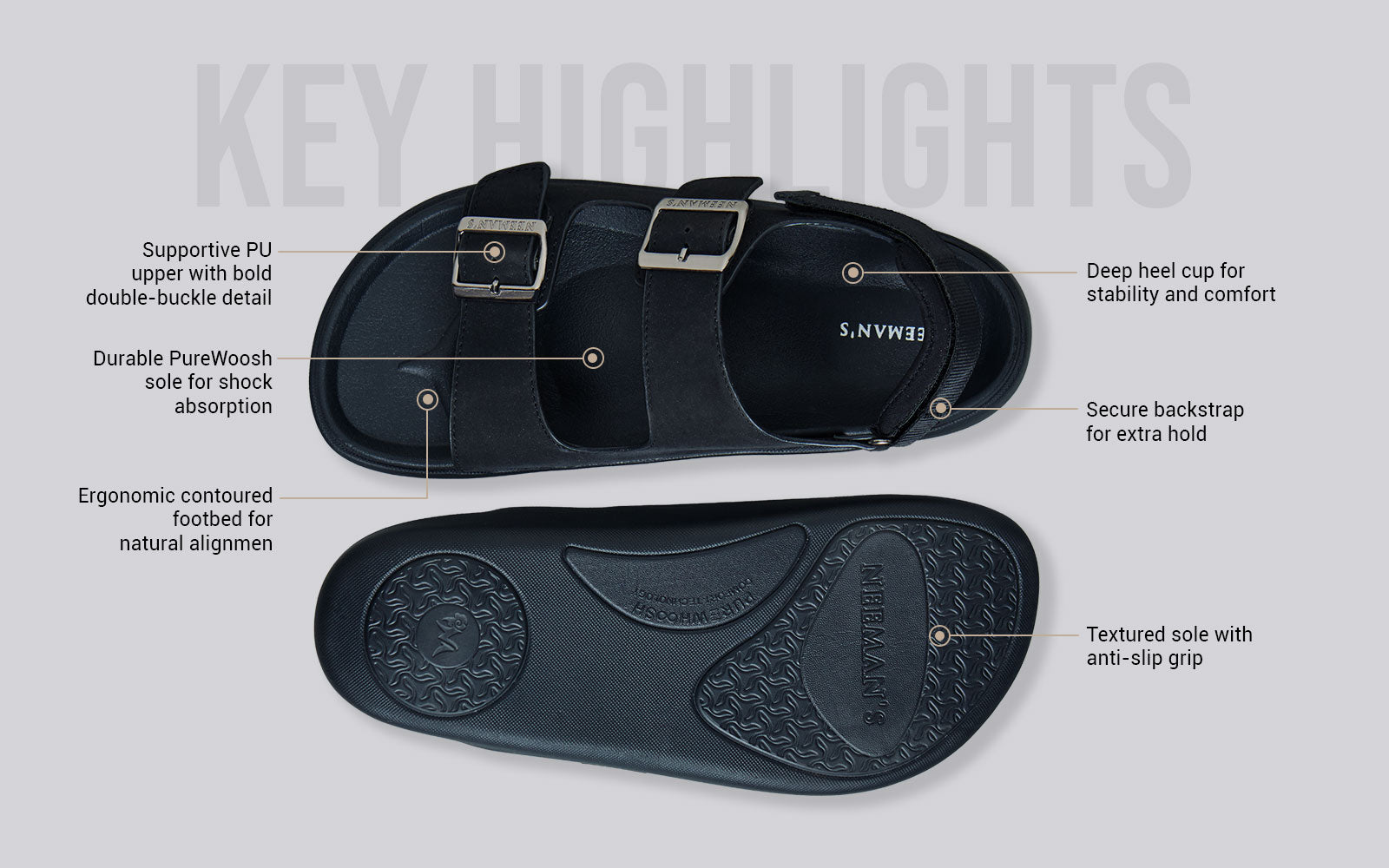 Meet the all-terrain all-rounder: Neeman’s PureWoosh Duo Glides. Built with bold buckles, a supportive backstrap, and all-weather toughness, this pair delivers comfort that shows up and stays put. From chill looks to chaotic days, its water-resistant build, contoured footbed, and grippy sole have your back—every step of the way.