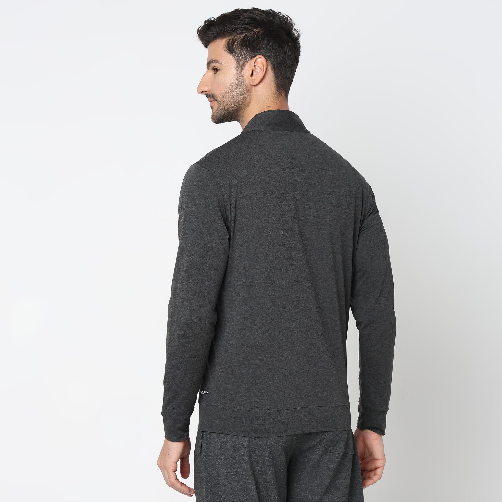 This modern activewear theme, solid pattern jacket has a high neck and full sleeve. Made from polyester, it is soft and comfortable to wear.
