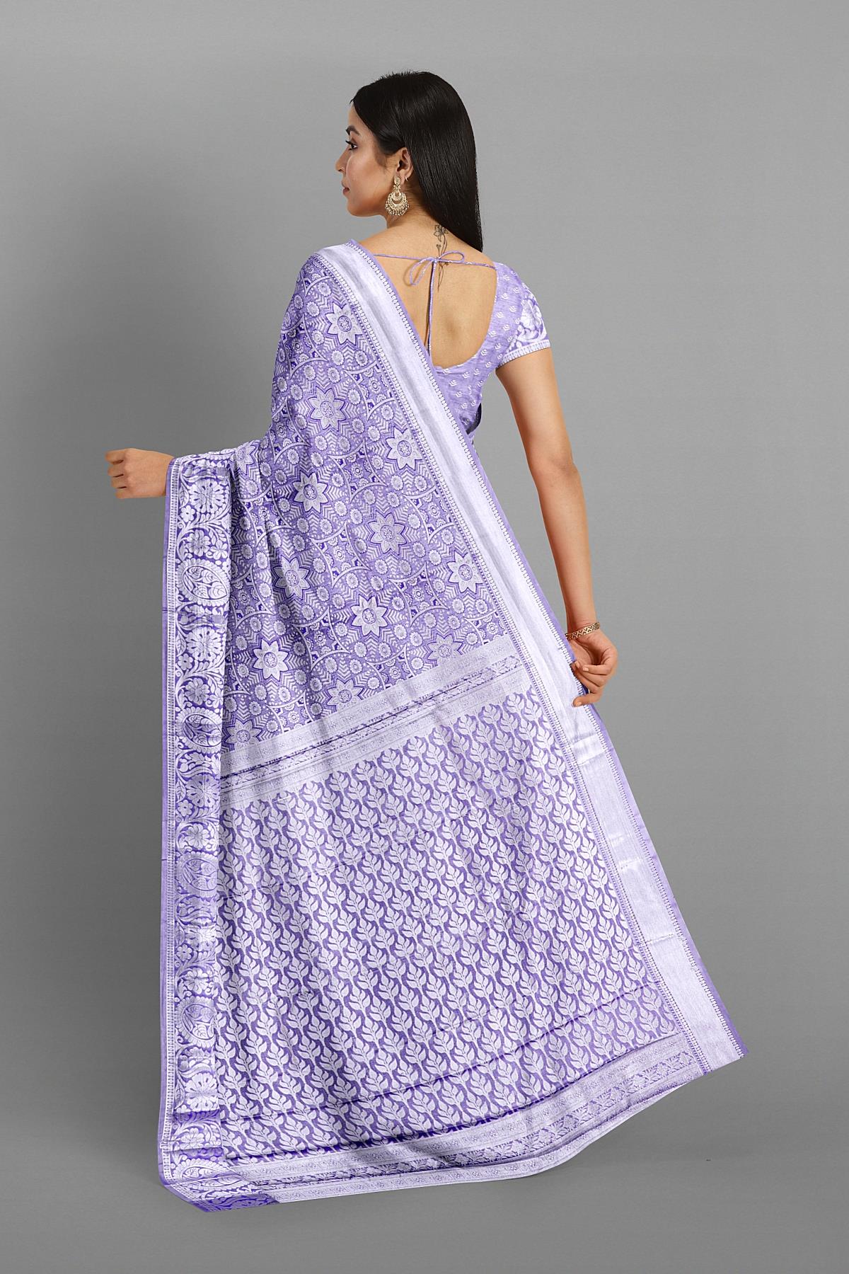 ROYAL BLUE and SILVER FLORALS TISSUE SILK Saree with SEMI PATTU