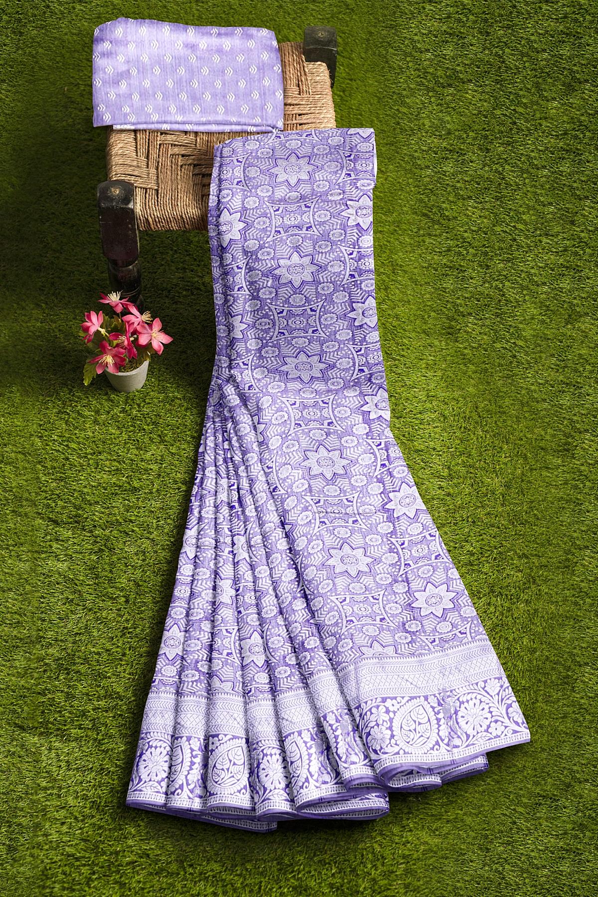 Latest ROYAL BLUE FLORALS TISSUE SILK Saree with SELF ZARI border. This saree comes with ZARI WOVEN TISSUE SILK blouse.
