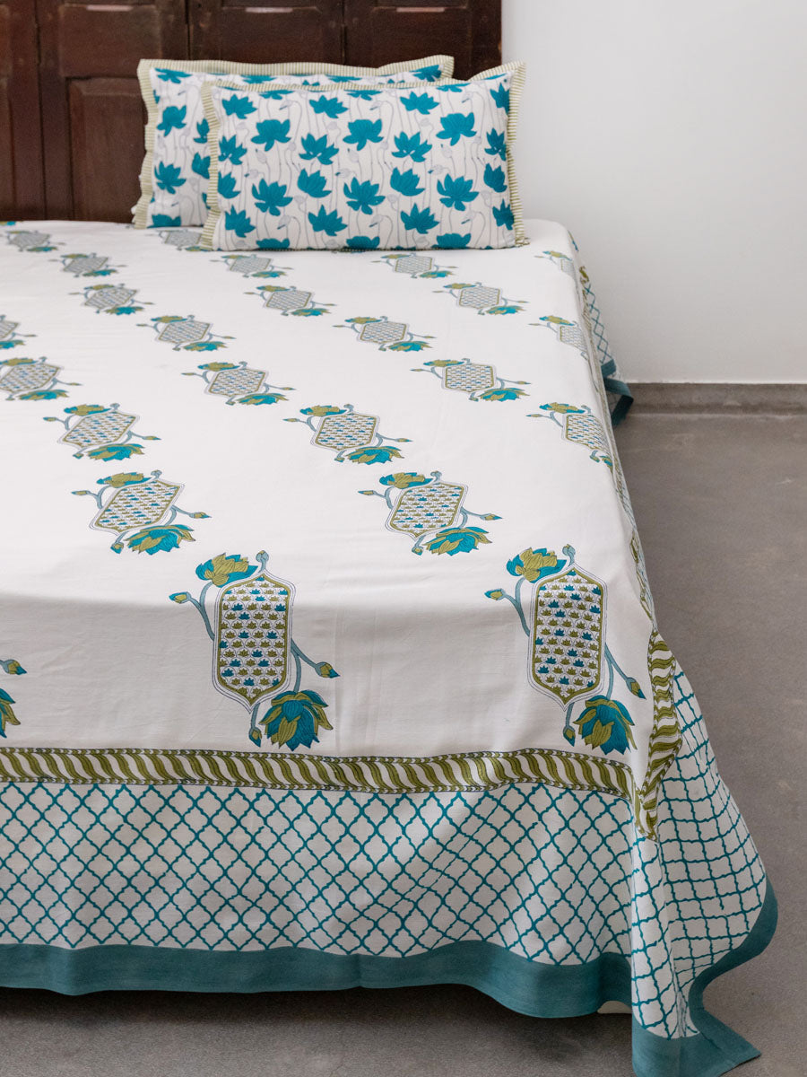 Padma or the Lotus is a central figure in many art forms including Pichhwai. It's a flower with meaning, beauty, and great cultural significance. The origin of the Lotus in Hindu mythology goes as far back as 'Samudra Manthan'. Its first association is with Lakshmi who also emerges from 'Samudra', hence, is referred to as Padmaja or Padmavati. This hand block printed home textiles collection is inspired by the beautiful lotus and other nature inspired elements.