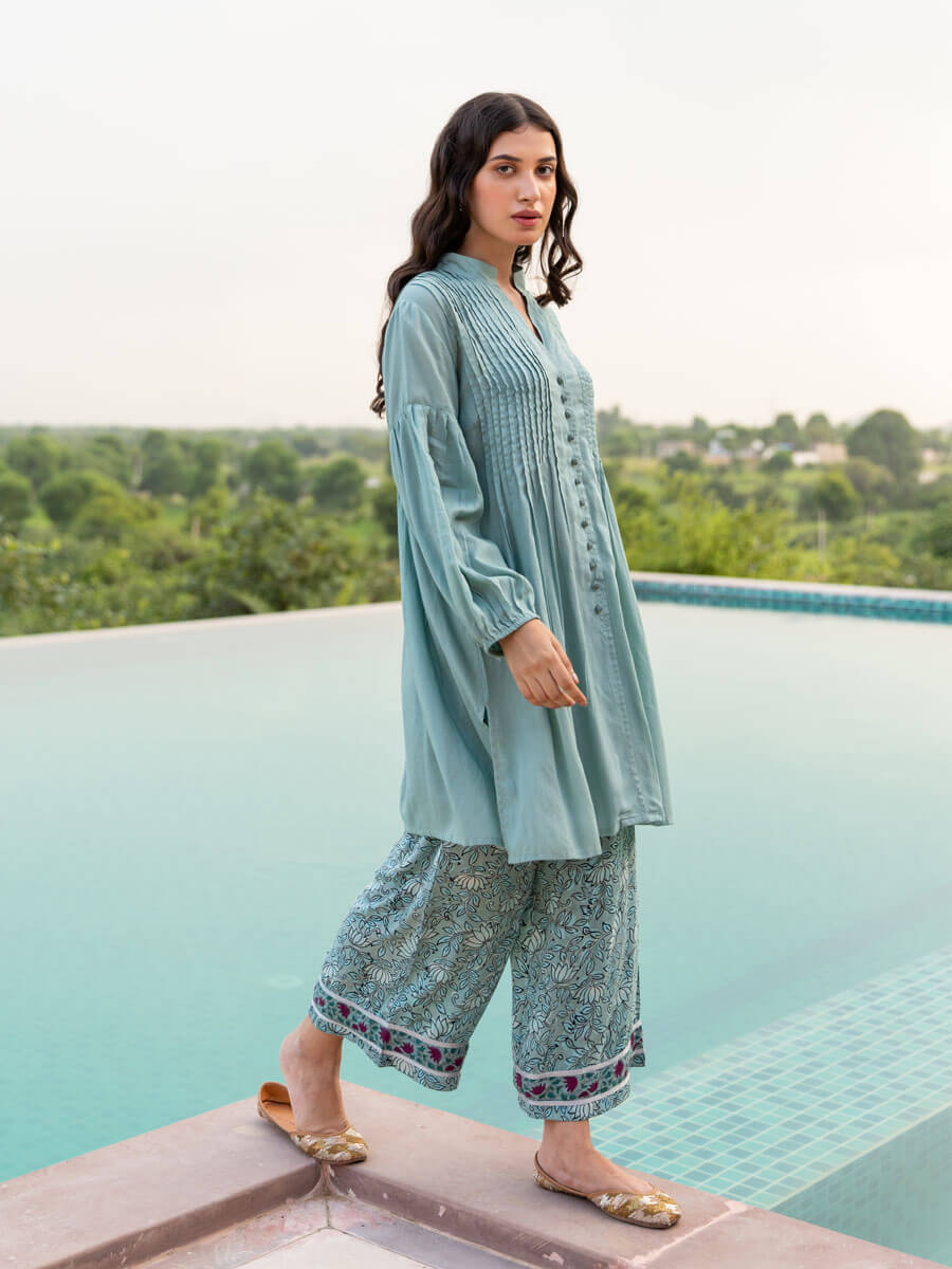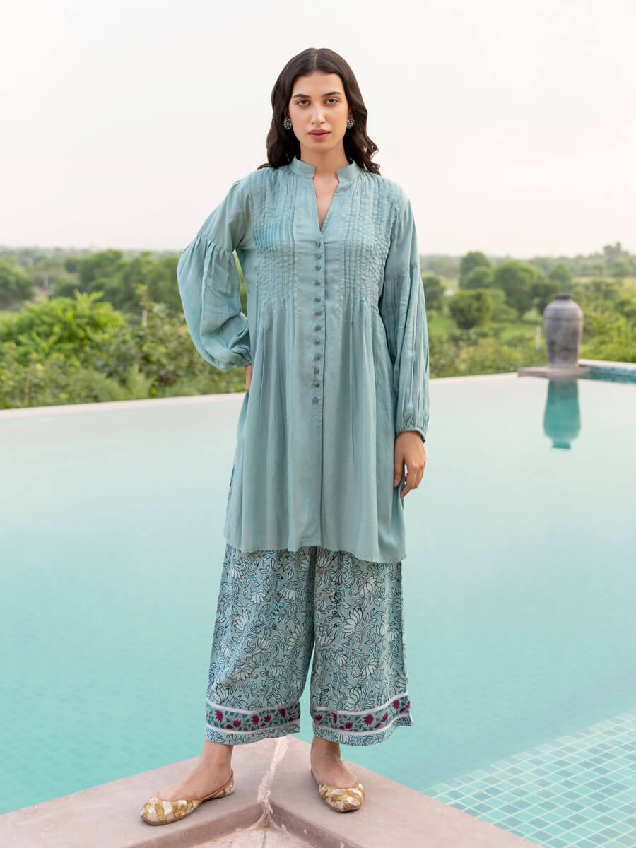Set of 2 - Indira Pintuck Shirt Kurta and Palazzo