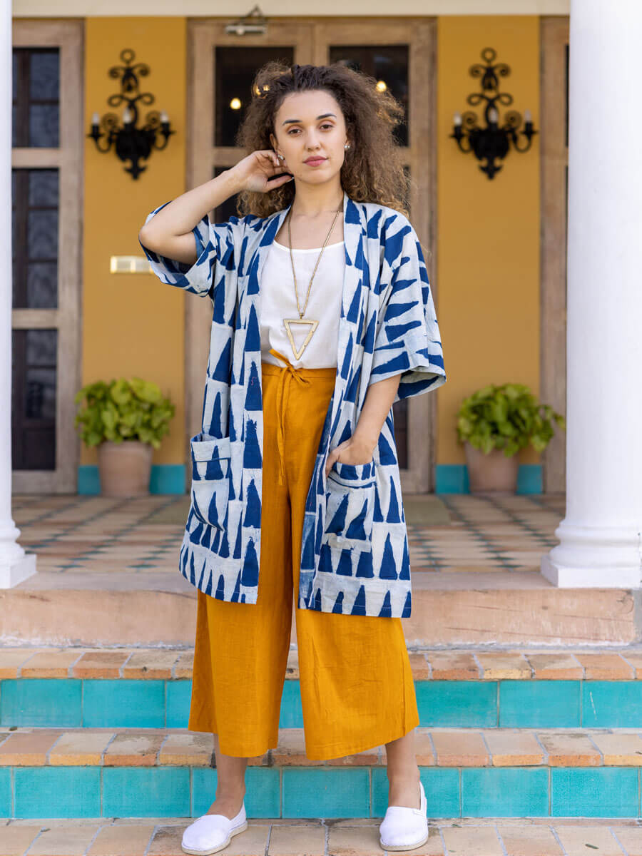 - Indian contemporary kimono indigo jacket and palazzo pants