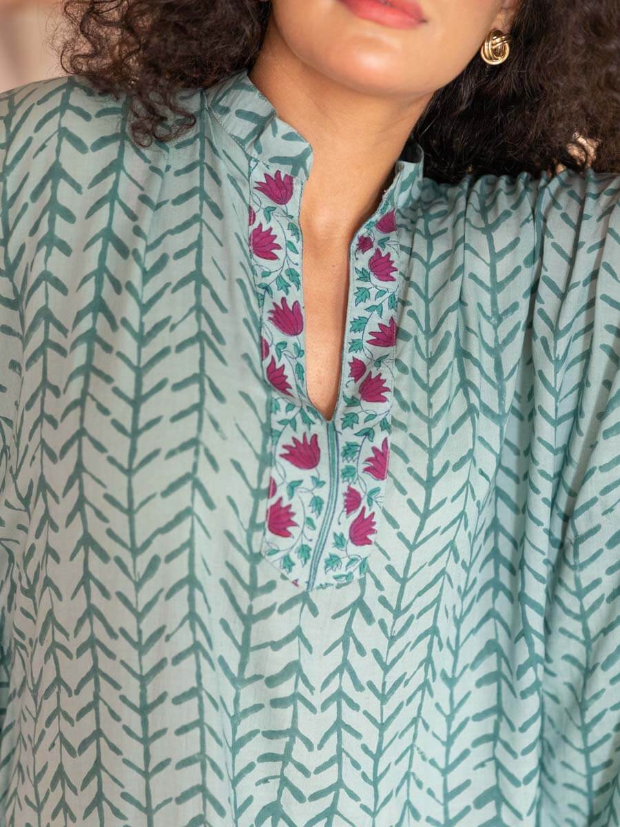 - Hand block printed on modal