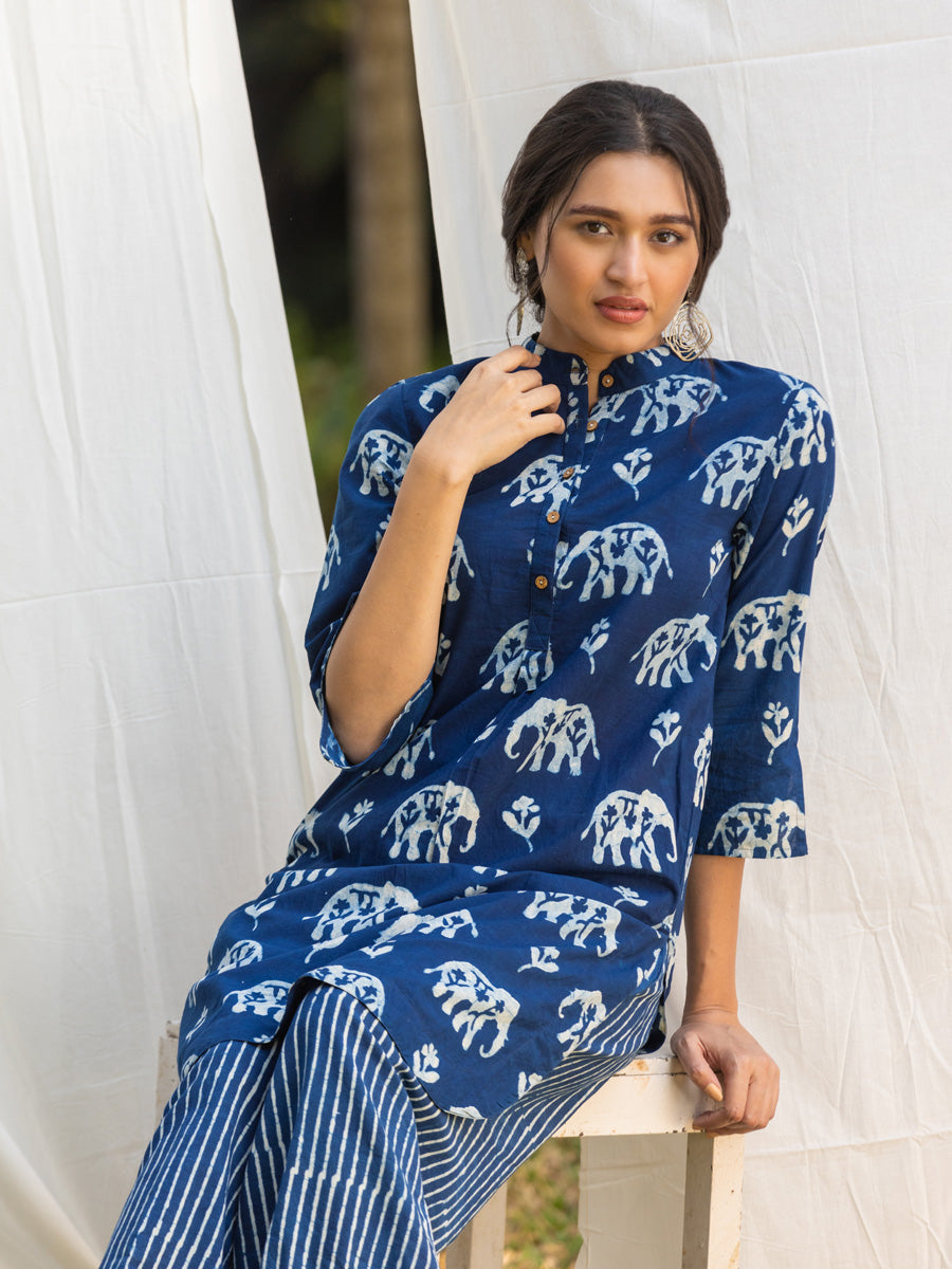 Set of 2 - Tarang Indigo Cotton Kurta with Pants