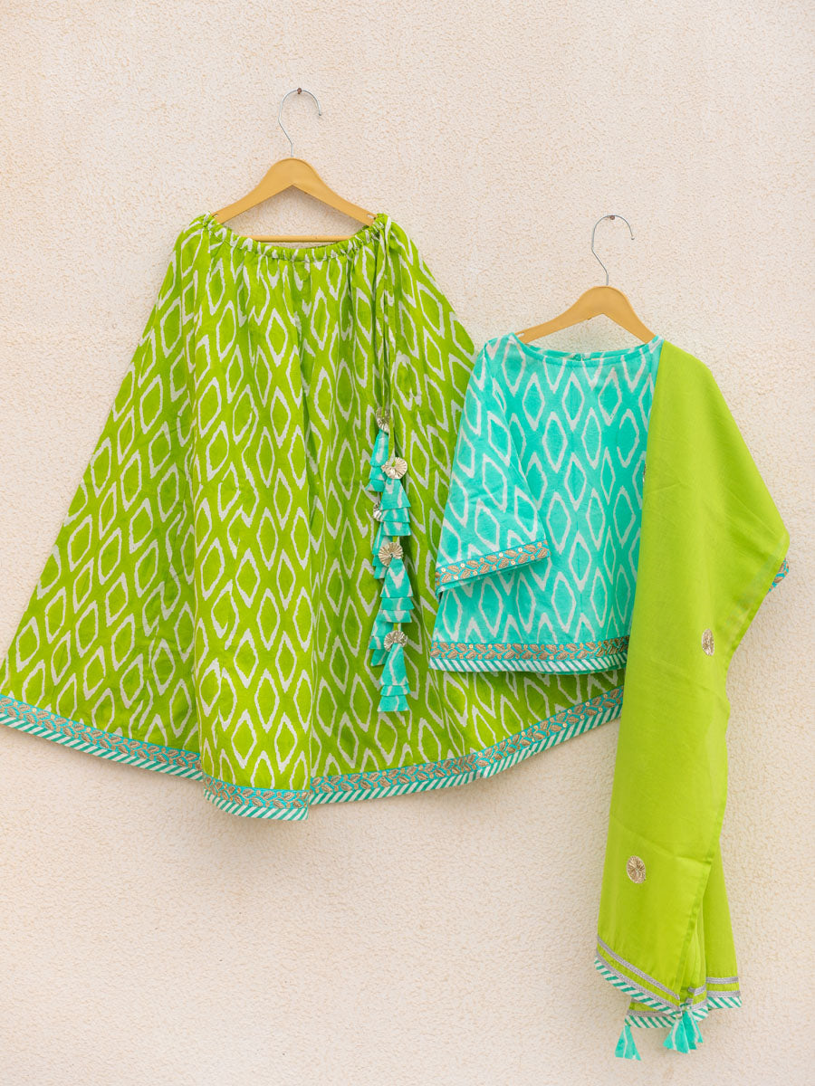 Set of 3 - Lilly Block Printed Cotton Lehanga