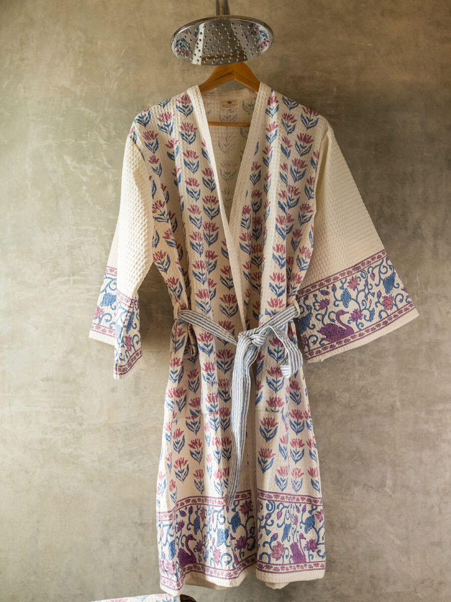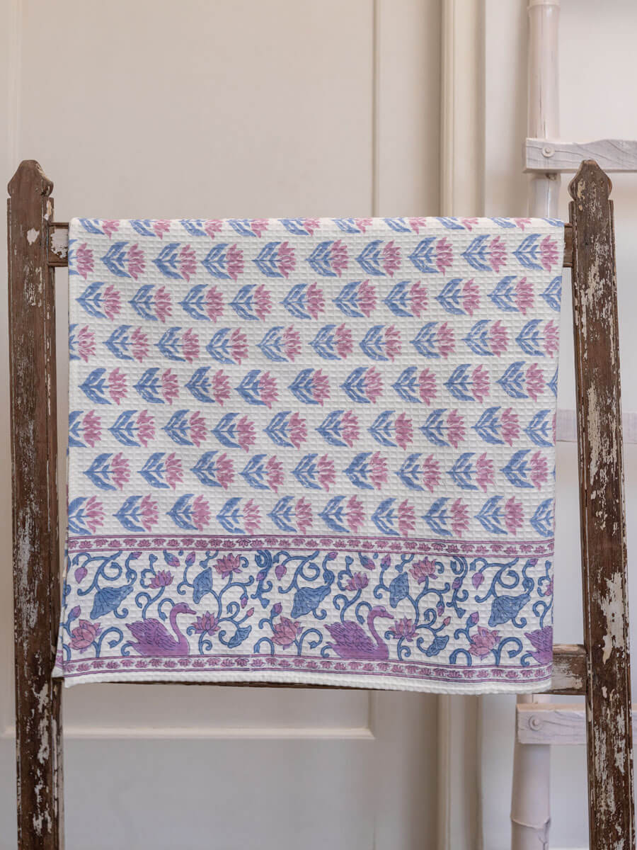 Padma or the Lotus is a central figure in many art forms including Pichhwai. It's a flower with meaning, beauty, and great cultural significance. The origin of the Lotus in Hindu mythology goes as far back as 'Samudra Manthan'. Its first association is with Lakshmi who also emerges from 'Samudra', hence, is referred to as Padmaja or Padmavati. This hand block printed home textiles collection is inspired by the beautiful lotus and other nature inspired elements.