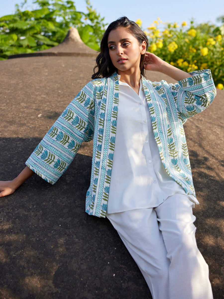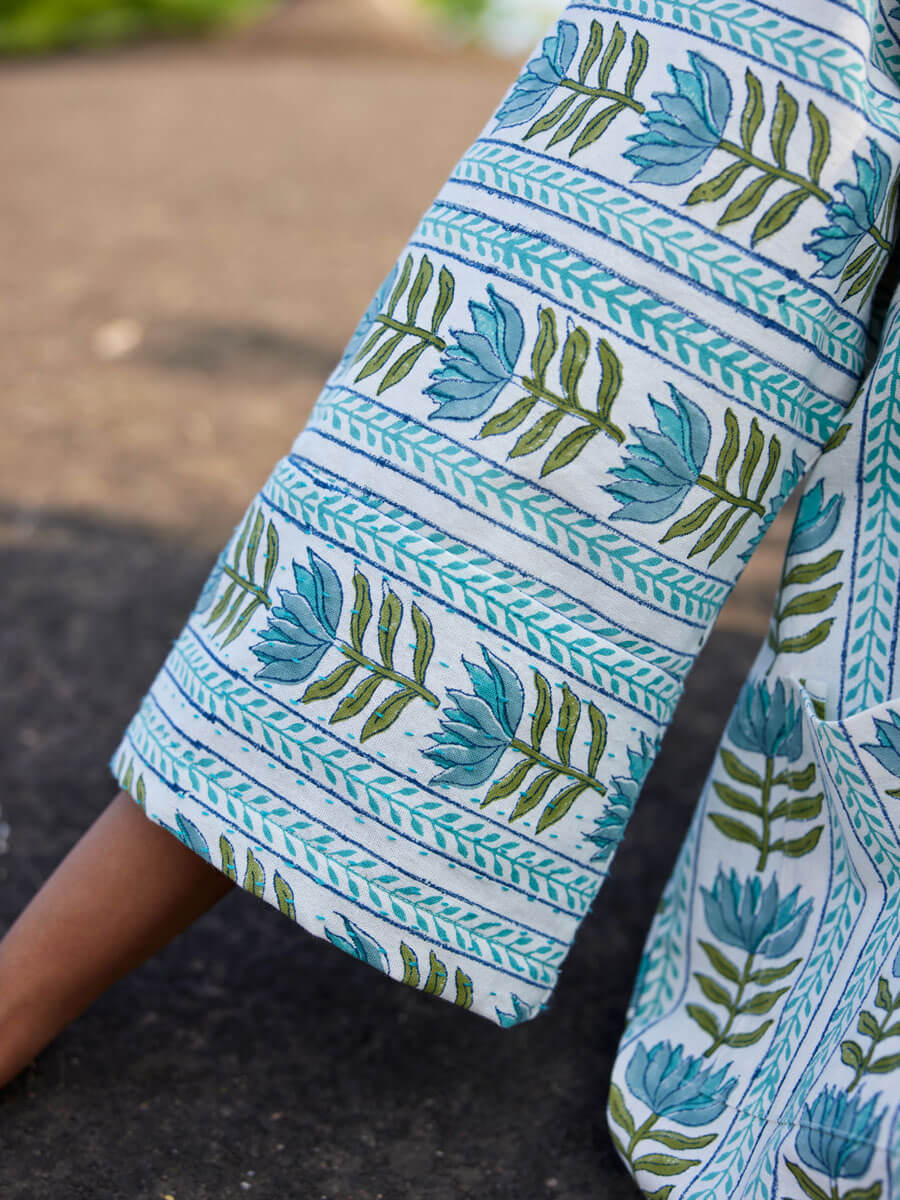 - Craft: Handblock printed and kantha embroidery on sleeves
