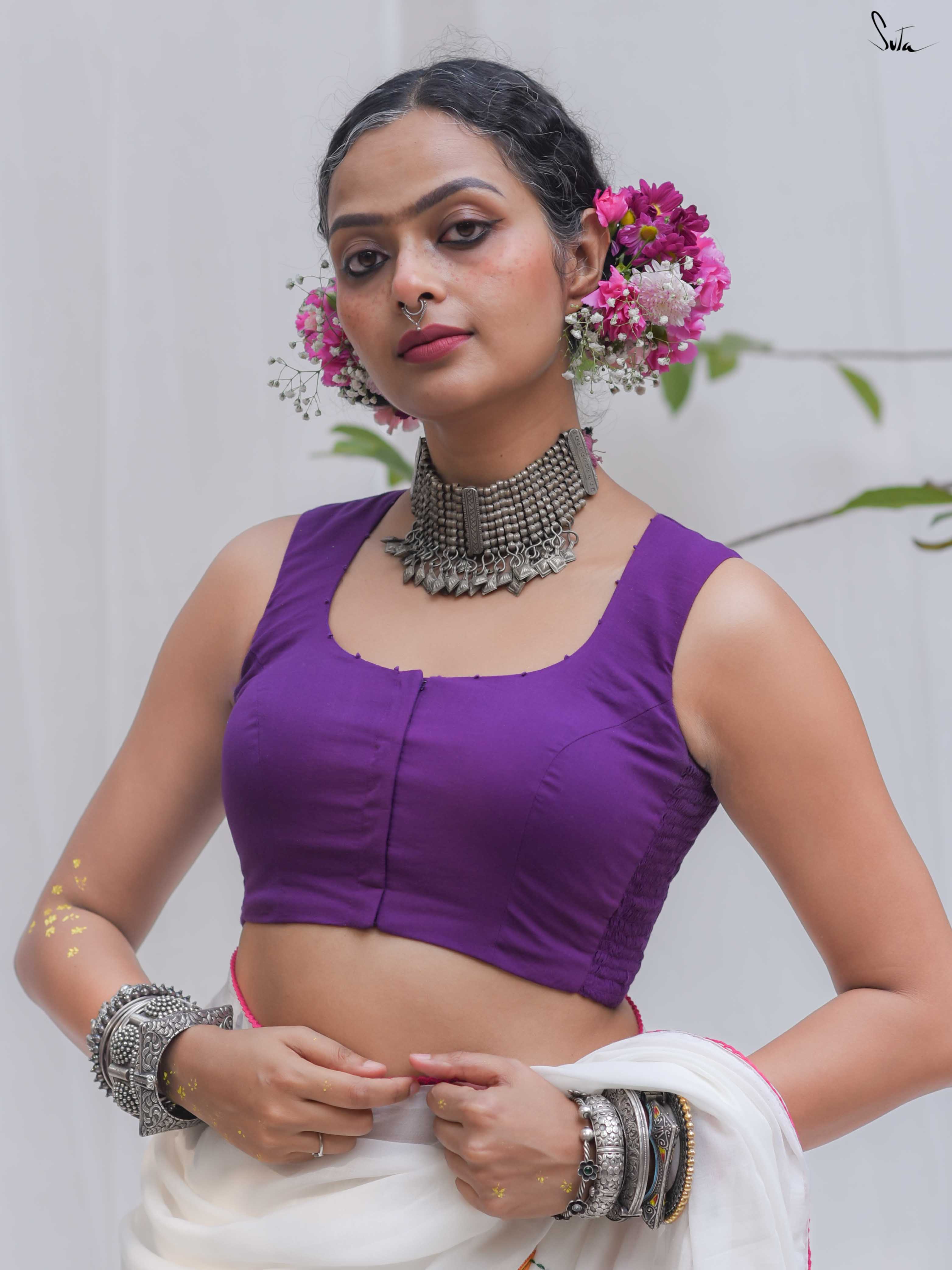 Elegant, minimal, and endlessly versatile, this blouse brings a timeless depth to the bright palette of Basant. Crafted in breathable cotton cambric, it features a classic U-neck and a sleeveless cut for easy, everyday comfort. Side elastic ensures a flexible, flattering fit.