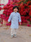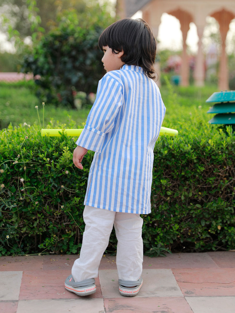 Sky Blue Stripes Organic Cotton Block Printed Long Kurta