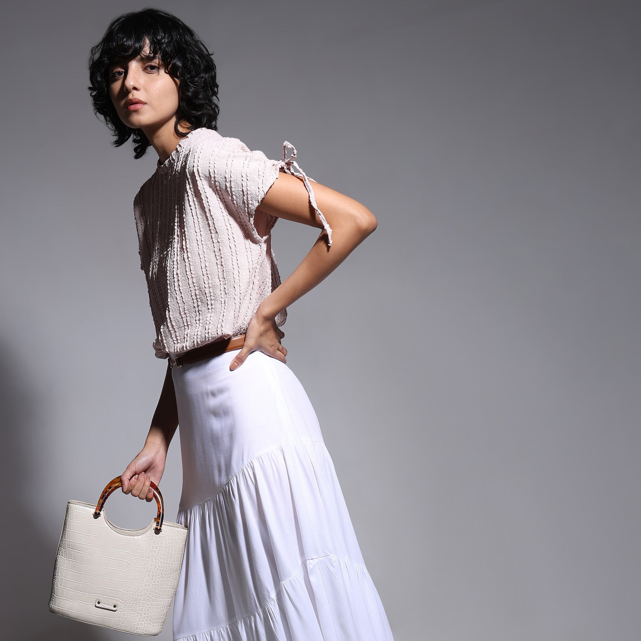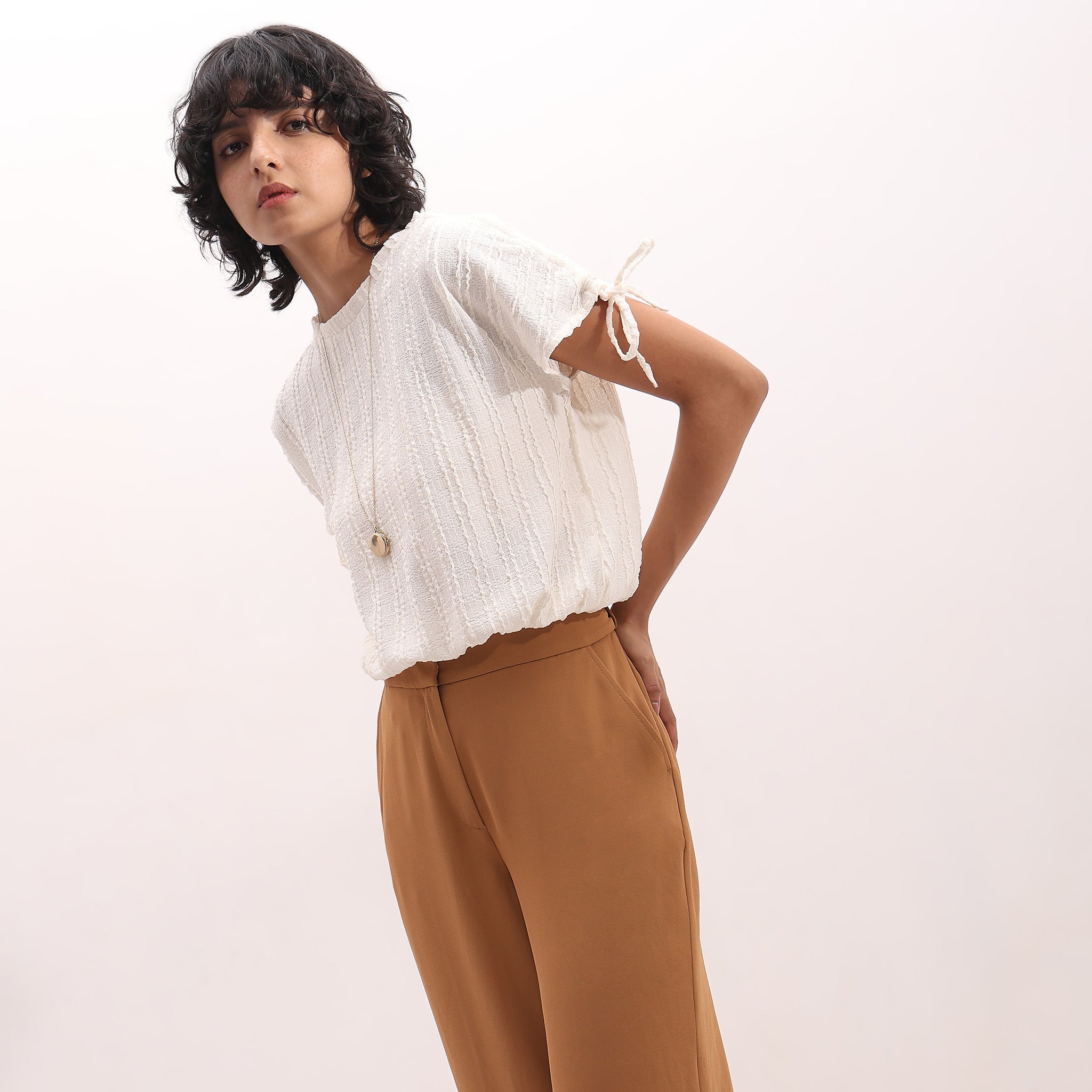 This solid theme, structured pattern top has a round neck and short sleeve. Made from polyester lycra, it is soft and comfortable to wear.