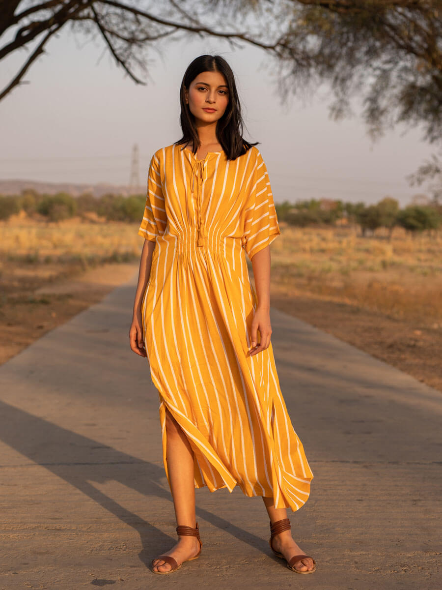 • Lovely comfort-fit viscose slub kaftan maxi dress