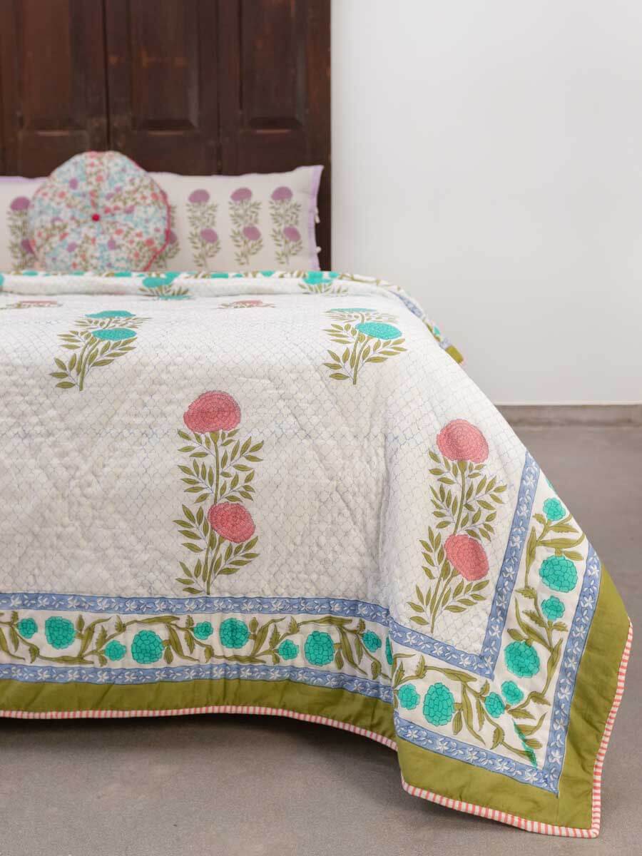 Comes in a fabric care bag. When not in use, fold neatly and store the quilt in the care bag. We suggest airing the quilt first time before use.