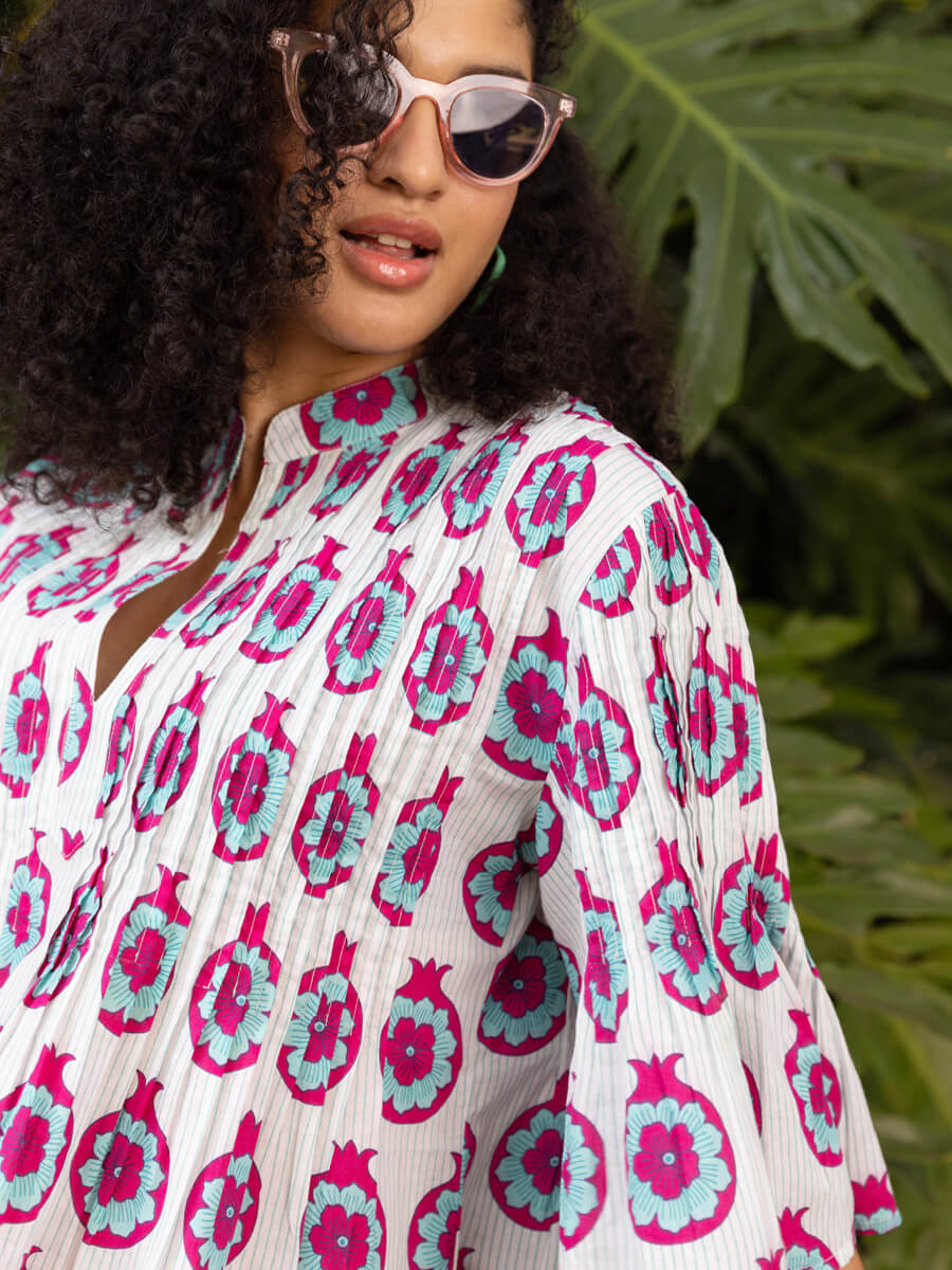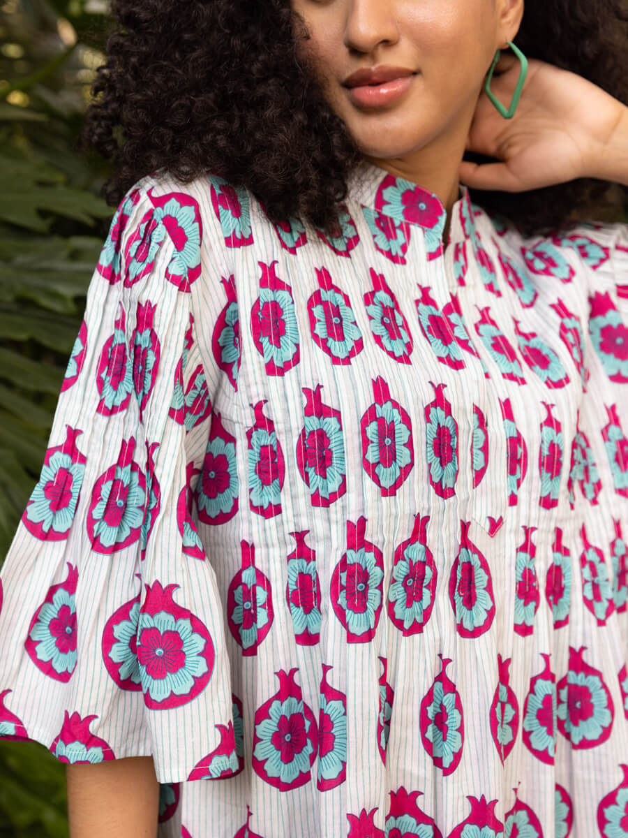 You love our pintuck dresses, we know that. We discontinued blue paradise recently and the hurt was real. But, we promised you something wonderful is in the making - here it is. Promise delivered! Presenting Tara, handblock printed Pinklay's iconic pintuck shortie!