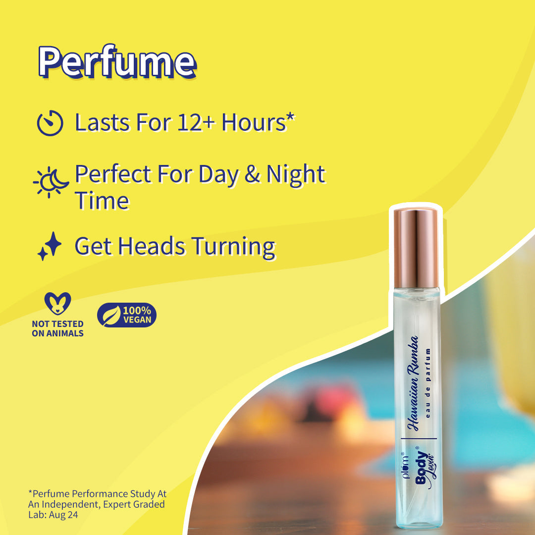 c. Hawaiian Rumba Perfume - Why go anywhere when you can experience the magnificent tropical paradise a.k.a Hawaii, in just one spritz? Get transported to a bright blue sky, pina coladas & blissful Hawaiian beaches with this coconut, passionfruit & hints of vanilla-infused scent!