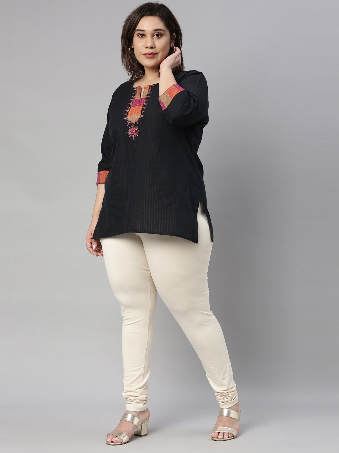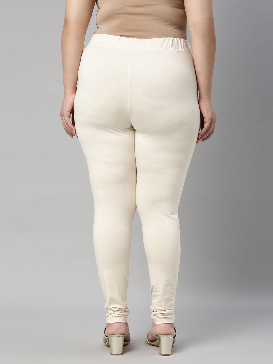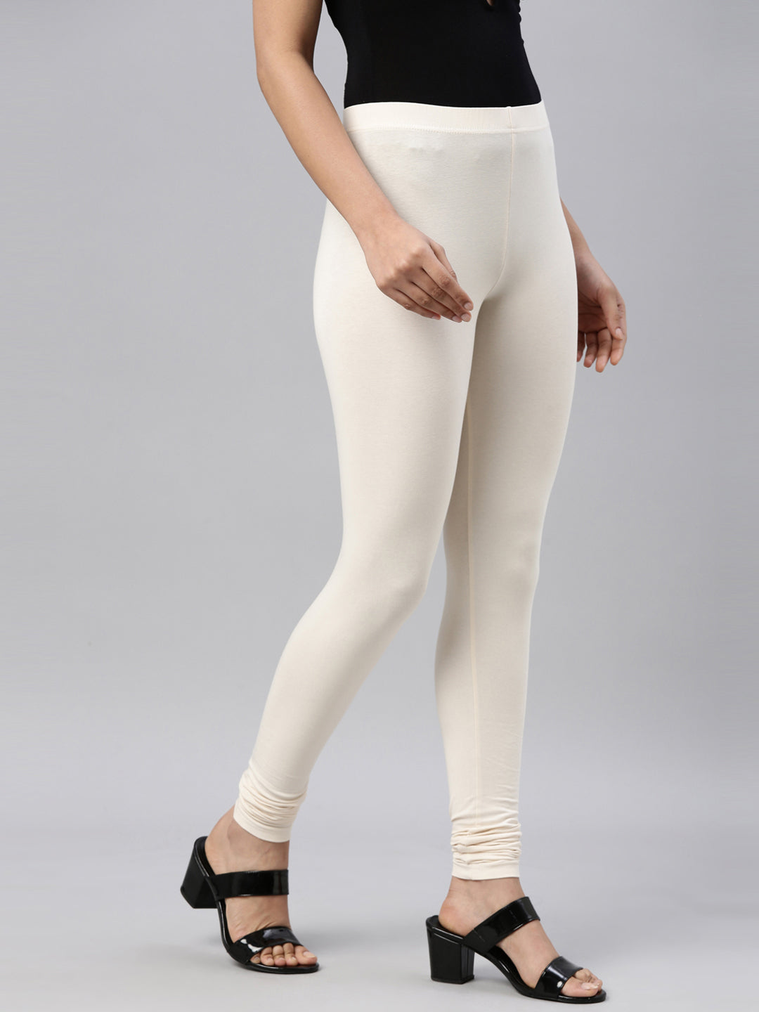 Go chic with a pair of Ecru Solid Churidar Leggings. Made from high quality cotton, it has a elasticised waistband & gathers at the hemline.